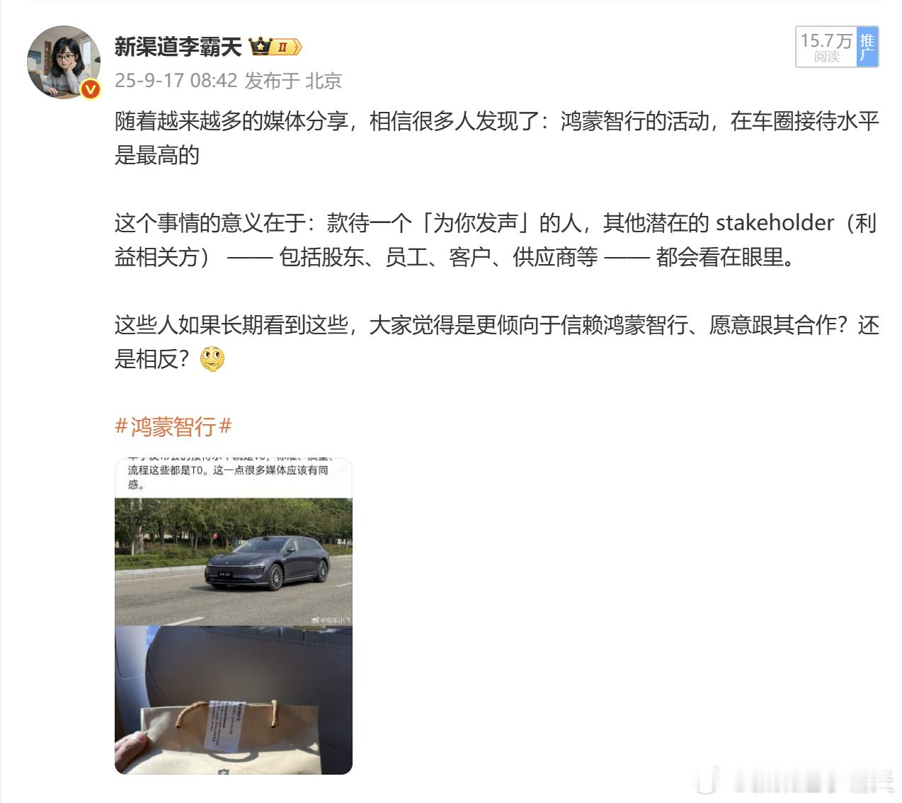 ➡️前段时间,鸿蒙智行在媒体活动中的接待服务(图1)收获了众多媒体人自发的点赞,还有被车圈熟知的 “鸿蒙大酒店”(图2)式服务,都体现了鸿蒙智行在提升品牌口碑和美誉度上做出努力。