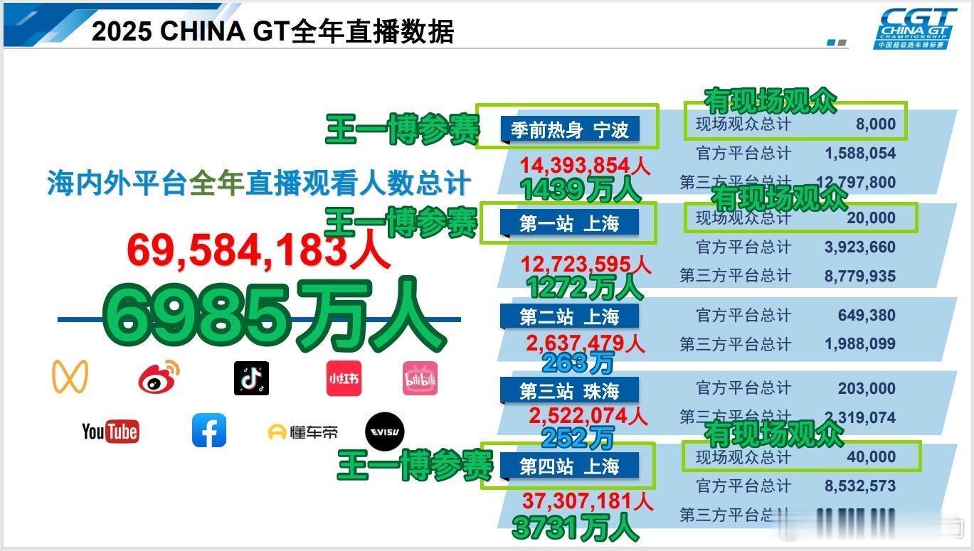 王一博参赛的三场(不含8小时耐力赛)线下观赛人次高达6.8万人
