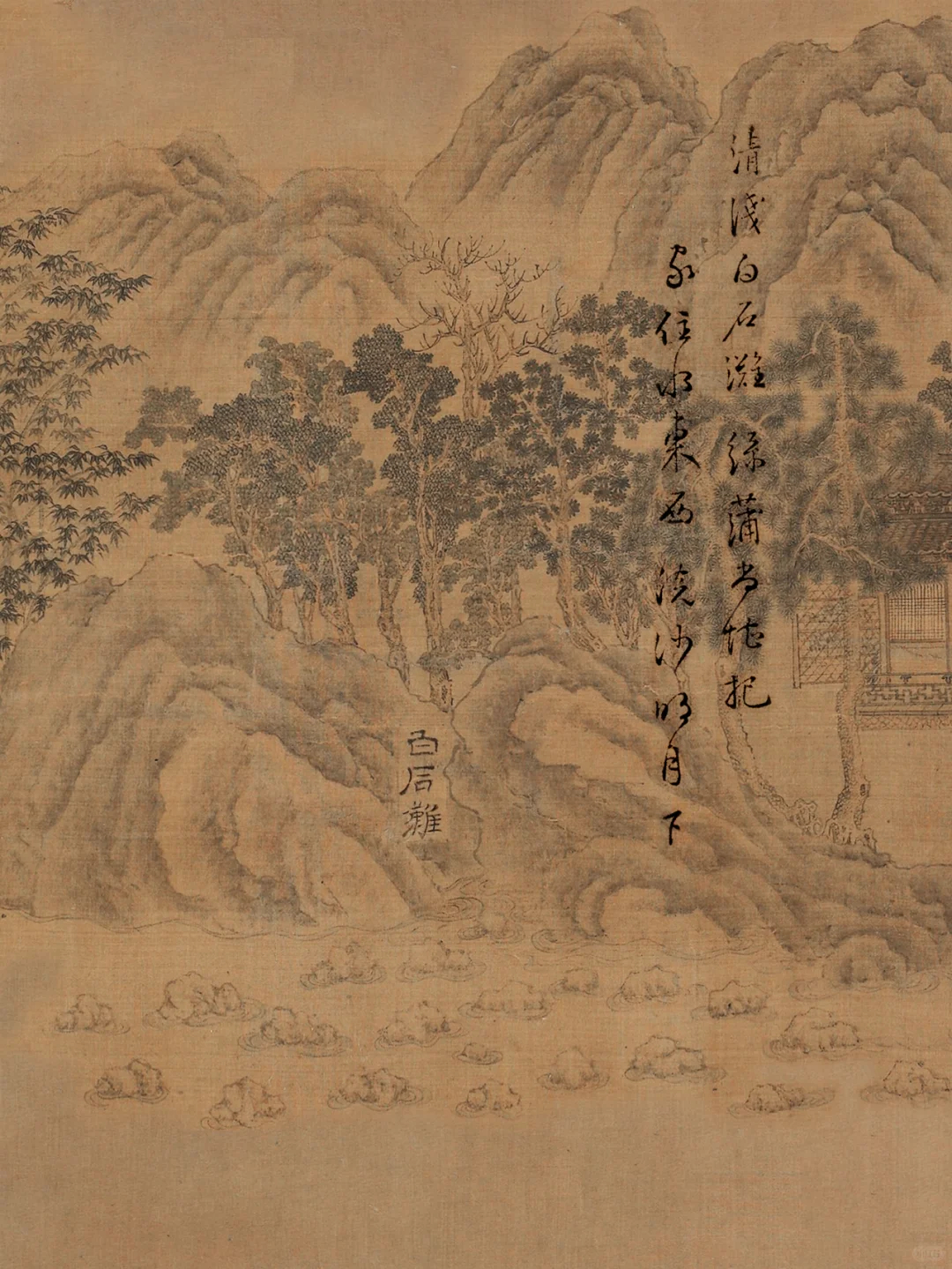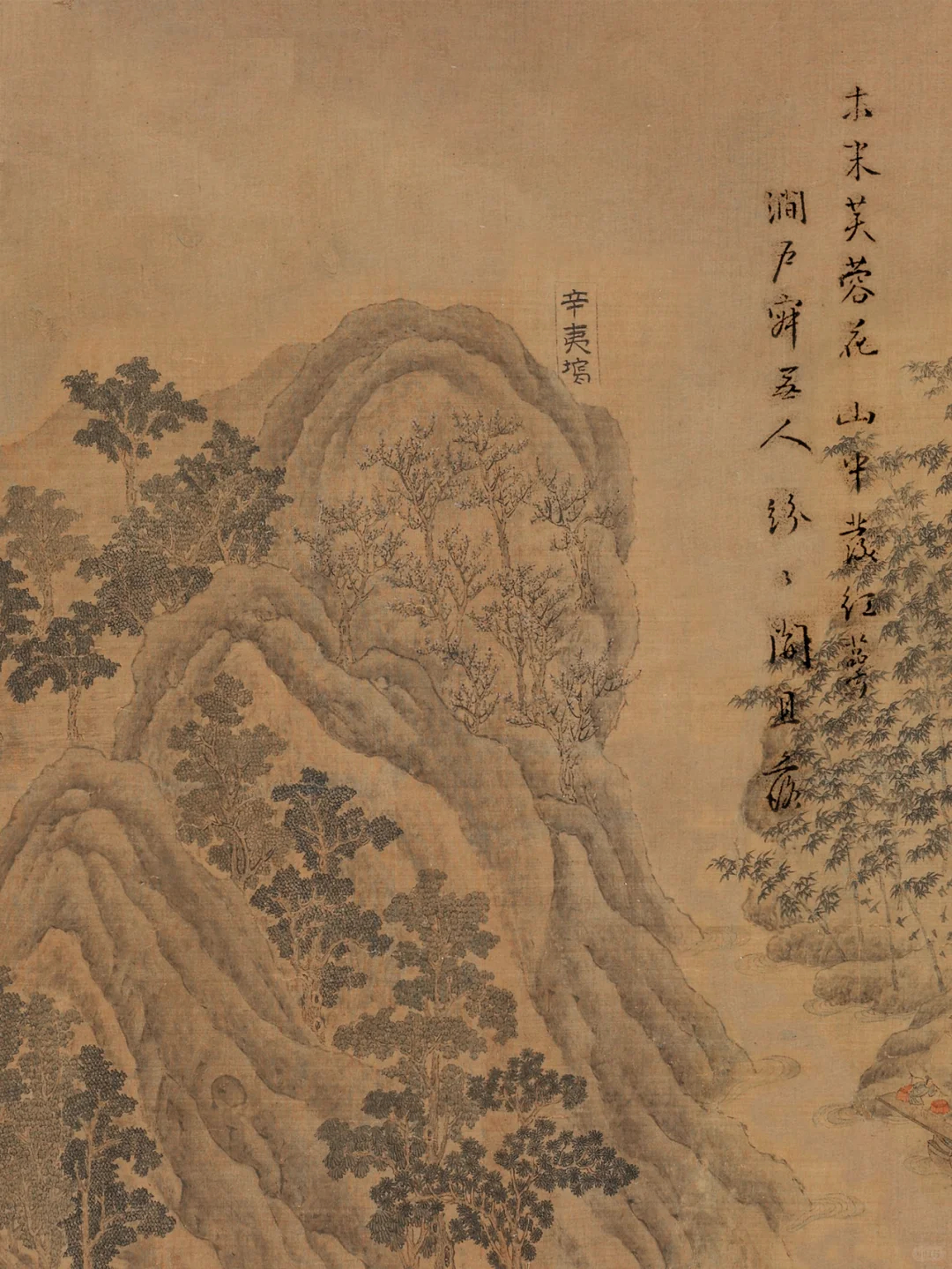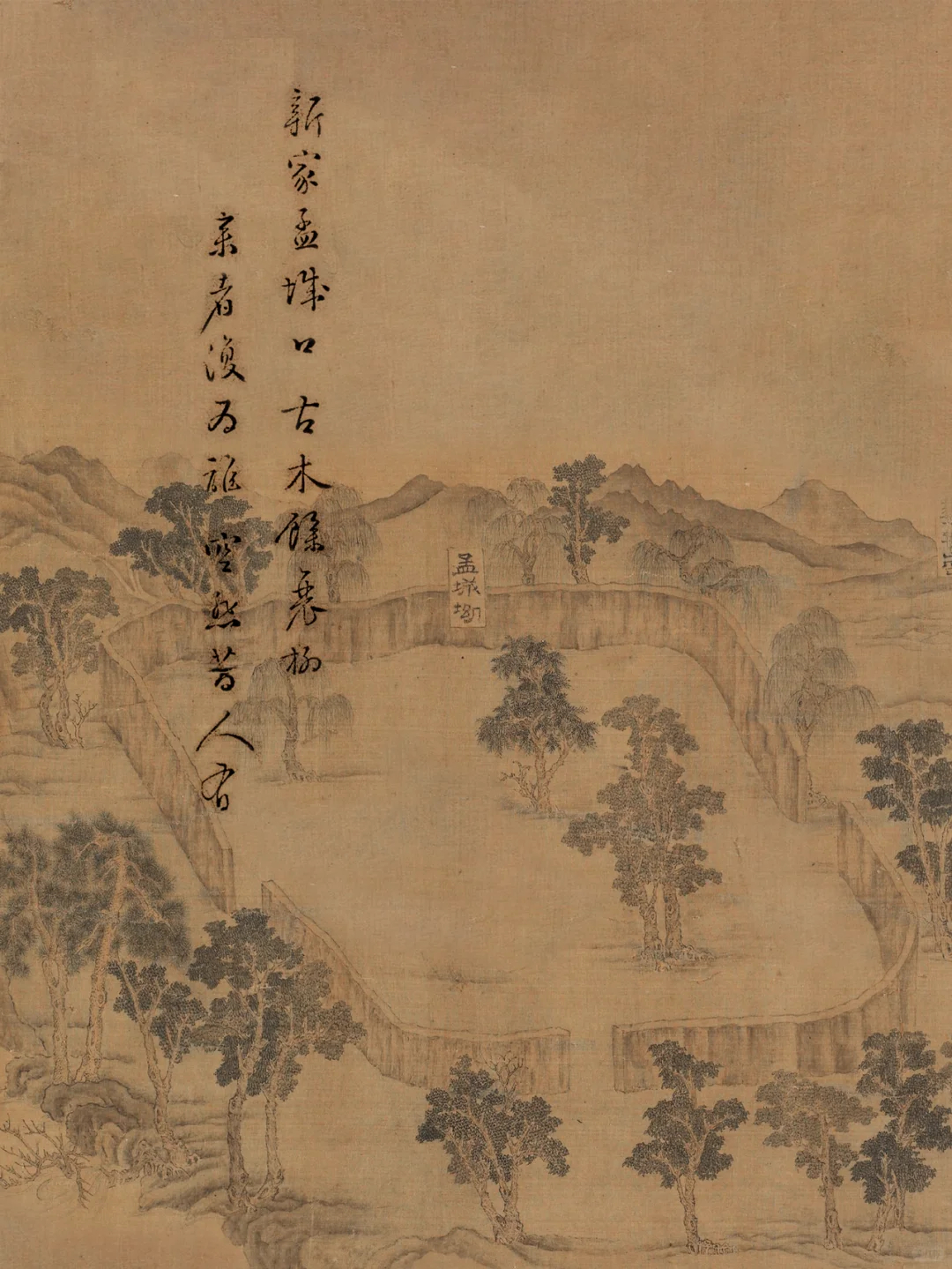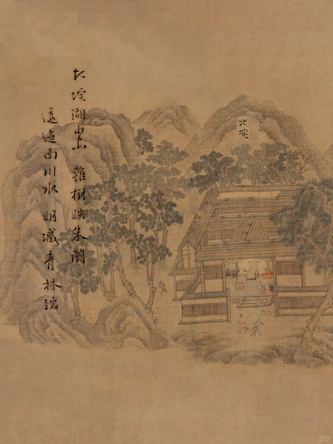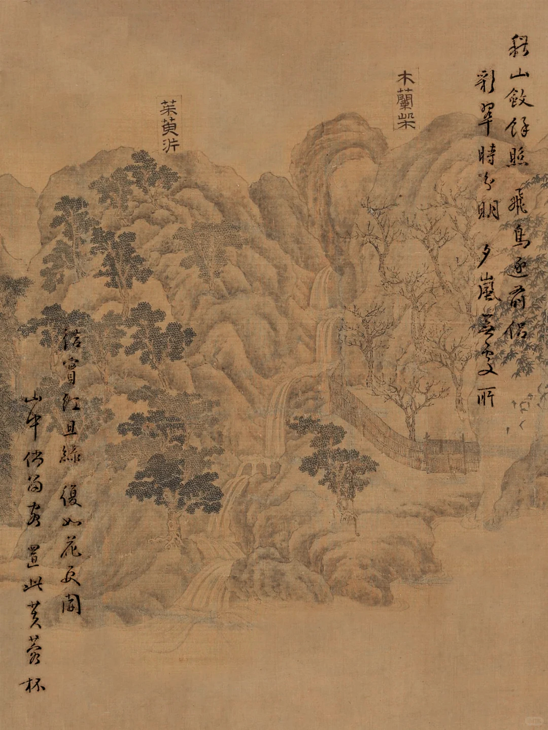 辋川,在陕西蓝田,一处山水绝美之地,王维于此隐居并作下《辋川图》和《辋川集》。《辋川集》描绘了辋川的二十处景致,对应到《辋川图》中从右到左的顺序分别为: