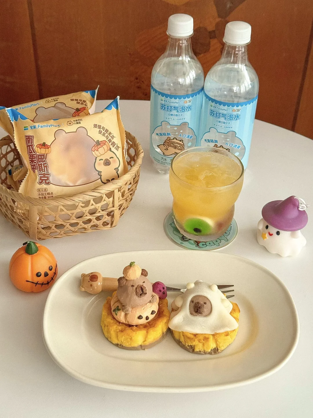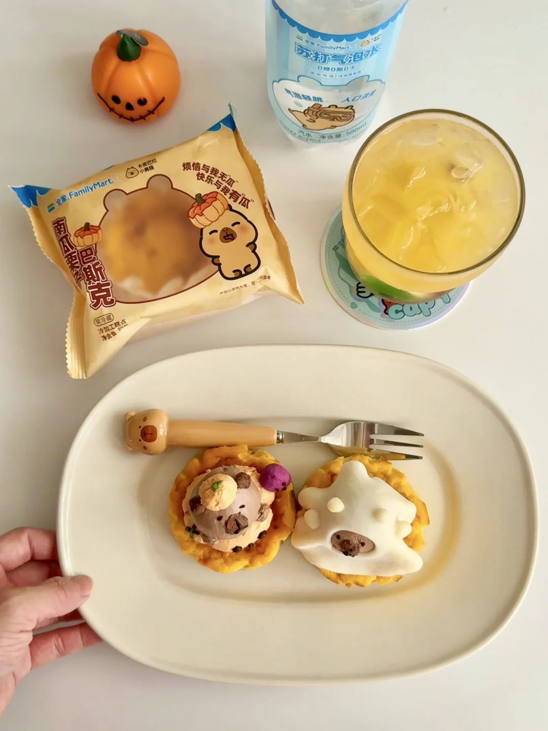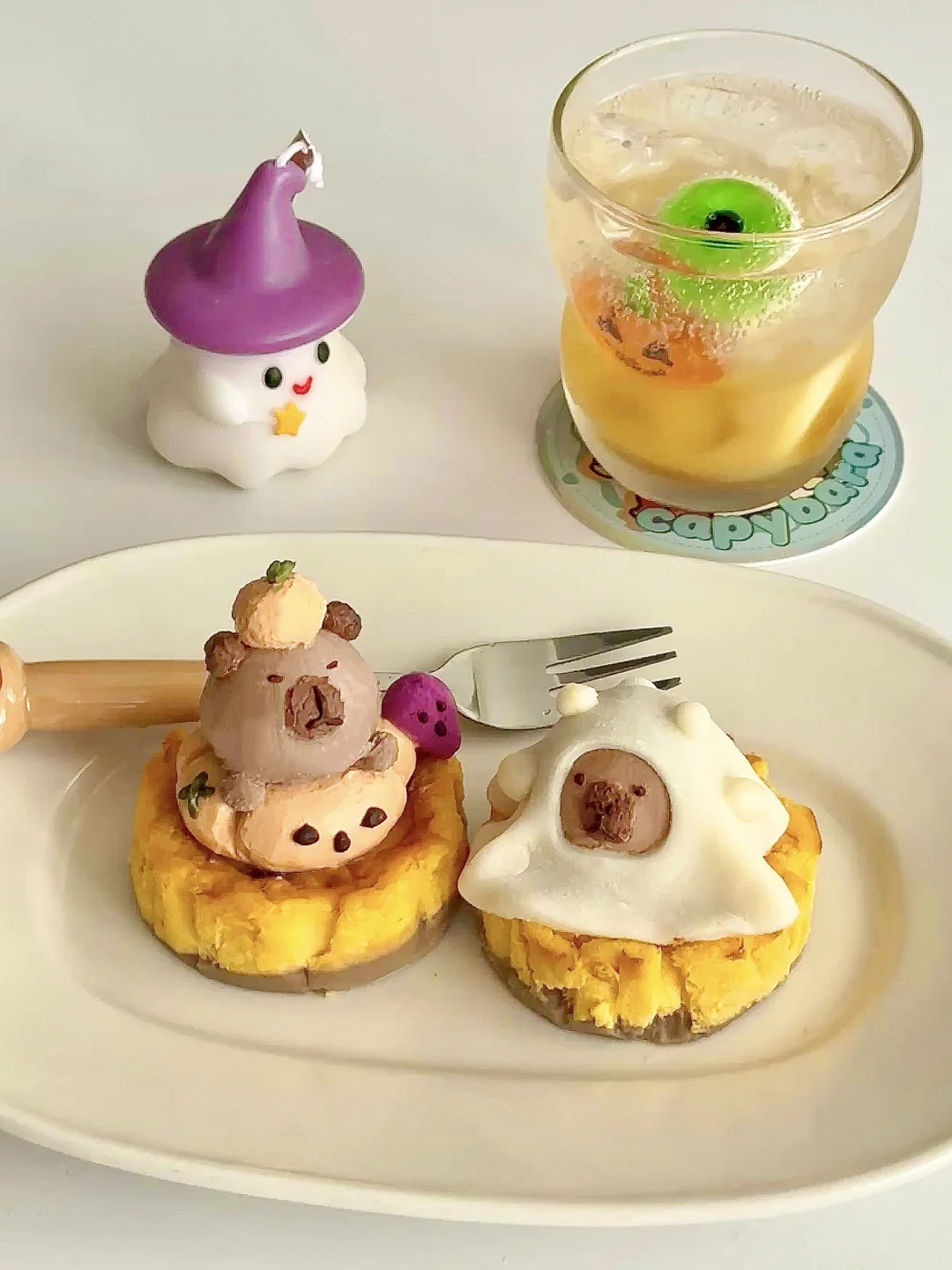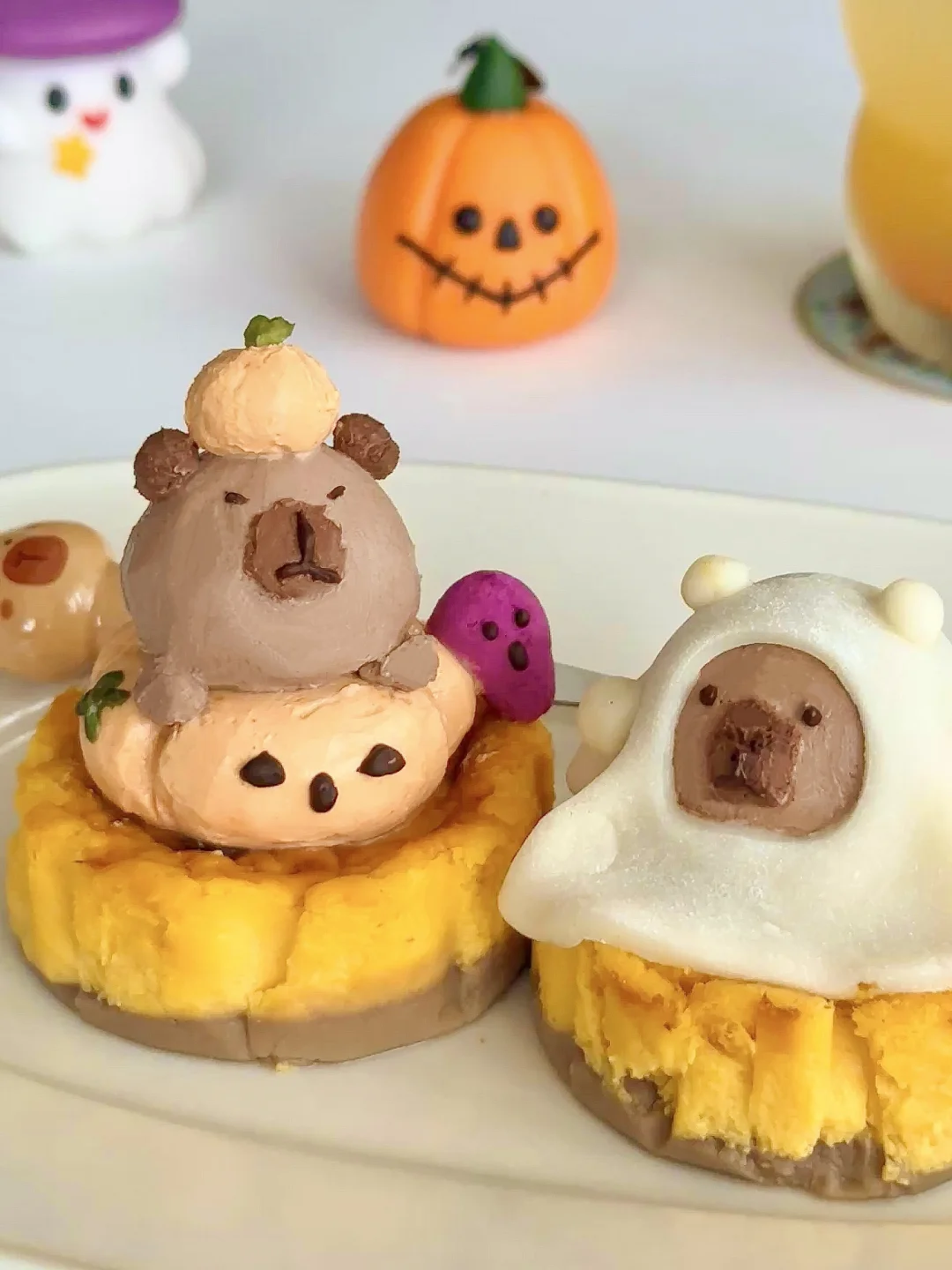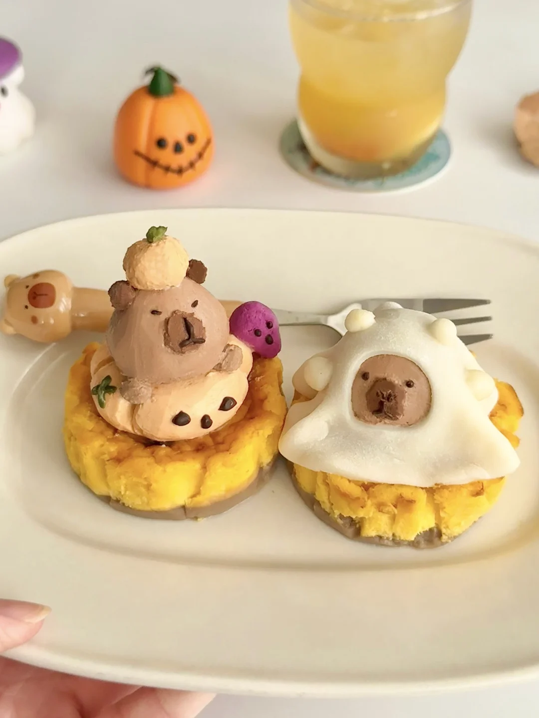 再用酸奶捏了两只穿上万圣节皮肤的卡皮巴拉