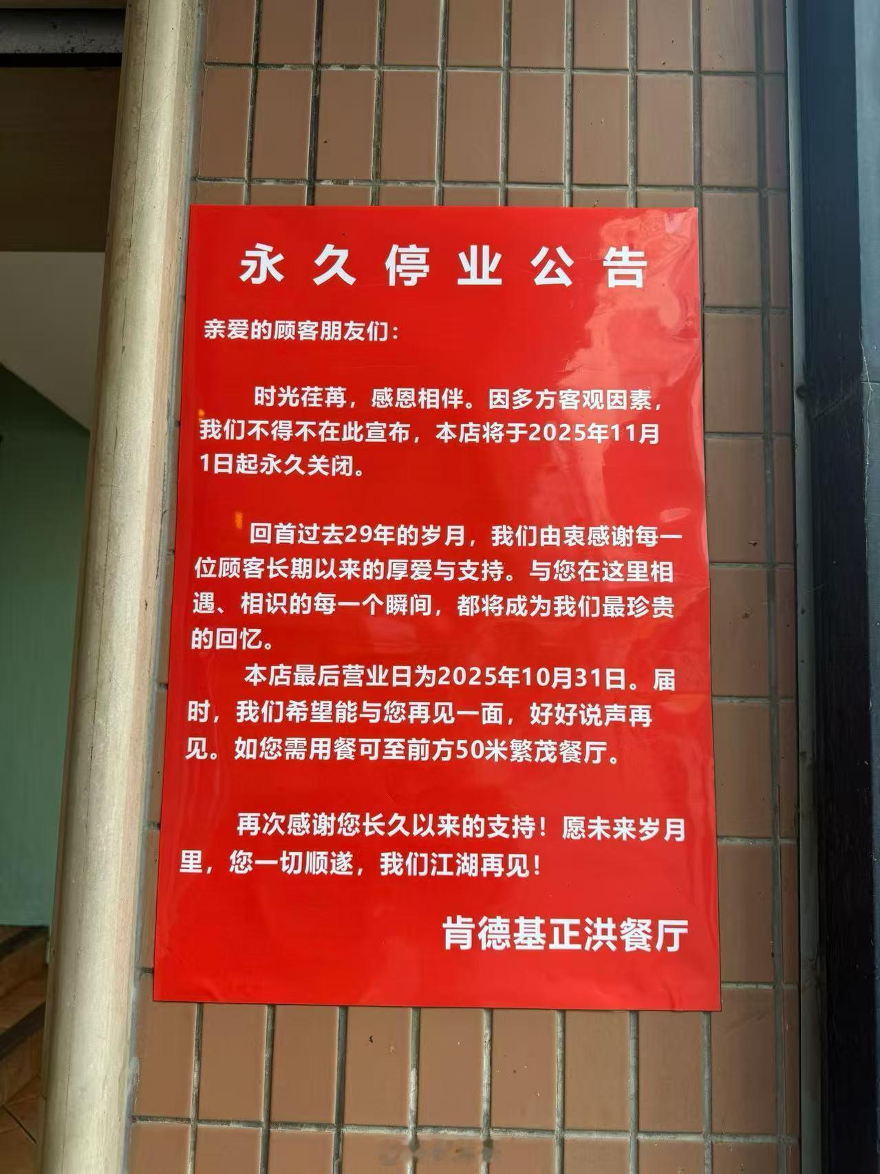 新街口正洪街广场的KFC明天开始永久闭店了29年了可惜了[黑线]