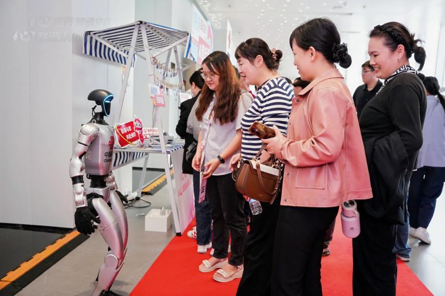 安徽联通的客服日现场,科技与文化碰撞出别样温情:AI 互动区里,机器人随音乐起舞引得老人频频举手机记录;VR体验中,“重走长征路”让红色记忆变得可触可感;非遗手作区里,大师手把手教大家缝制香囊、剪窗花,满是烟火气。更贴心的是,展区随处可见放大字体的指引牌,工作人员还主动递上老花镜与热水,让长辈们轻松感受科技魅力。