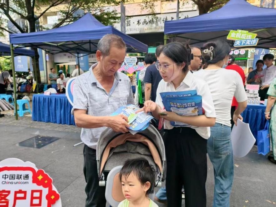广西联通则把服务送到社区“家门口”:联合公安反诈中心开展科普,民警用真实案例拆解“刷单返利”“冒充公检法”等骗局,搭配有奖竞答让防骗技巧入脑入心;工作人员耐心帮老人调试手机大字模式,社区卫生服务中心的医生还现场提供免费义诊,从“守护钱袋子”到“关照健康”,一站式解决老人难题。