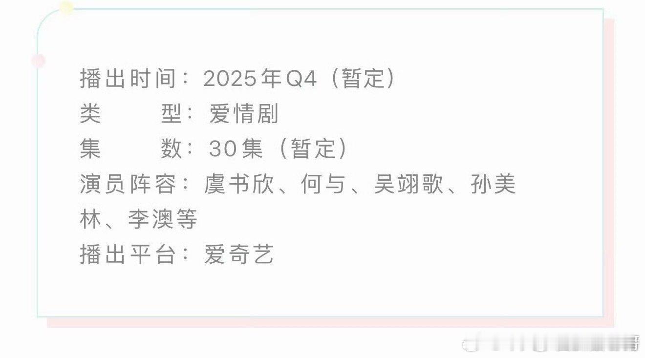 虞书欣何与《双轨》播前招商,预计第四季度播出