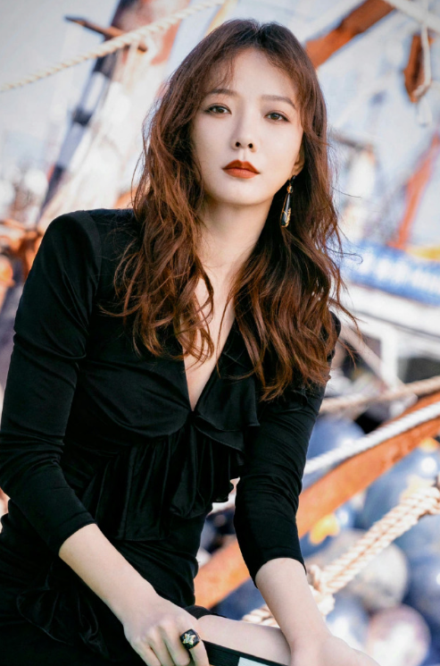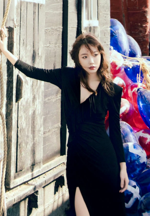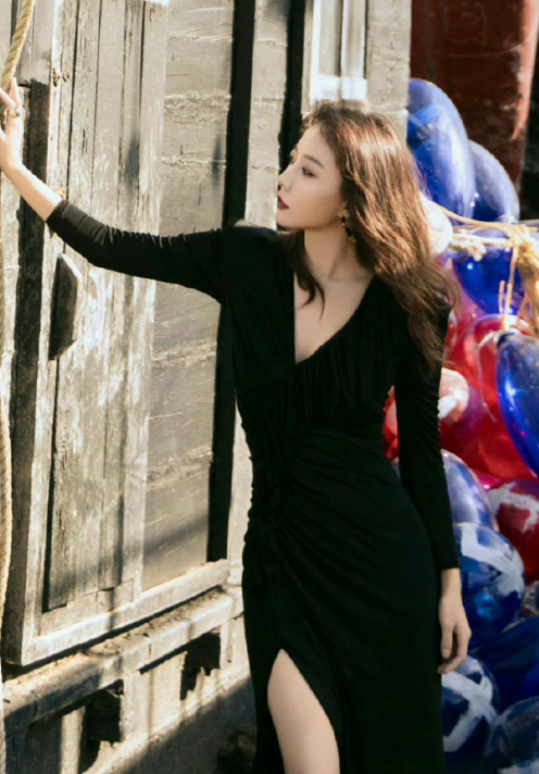 王珞丹质感大片,黑色开叉长裙,超性感的,nice!