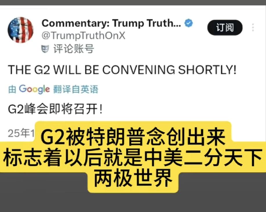 G8变G7, 现在特朗普也提出G2论,这就是说明世界大变局来临,资源就那么多,你多吃多占,别人就少吃少占,而这个特朗普G2论一出,代表这老美至少占一半已经明确,老美还是强国,至于另外一半,老美才不管身上的藤壶。