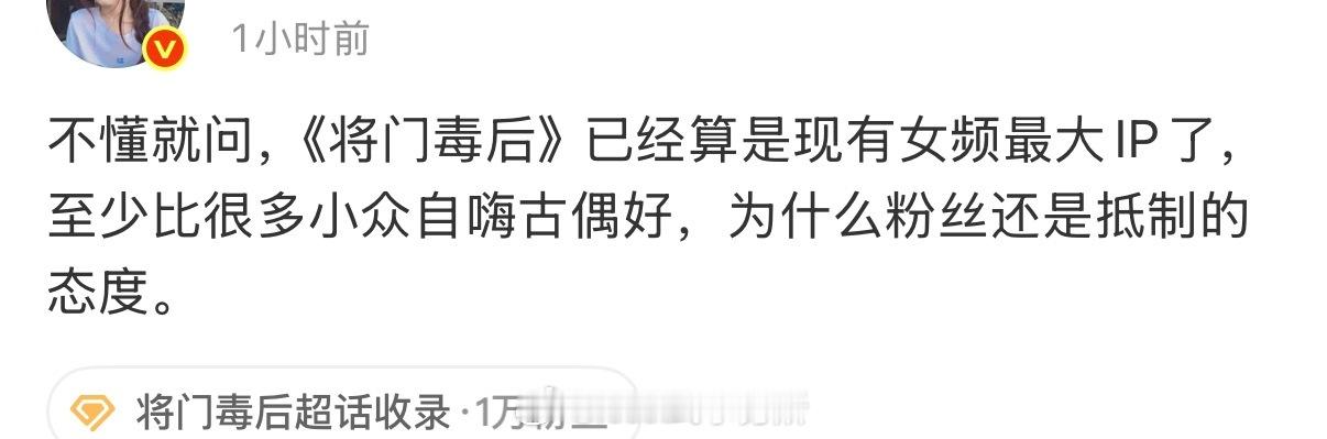 我也觉得,将门毒后已经算是古装剧中的大ip,女频剧但男主的高光非常多,属于男女主人设都很好双强高智,为什么花和生粉那么抵制[笑cry]