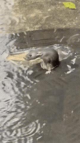 老鼠,太胖了,被卡住了。 它的下场到头了。
