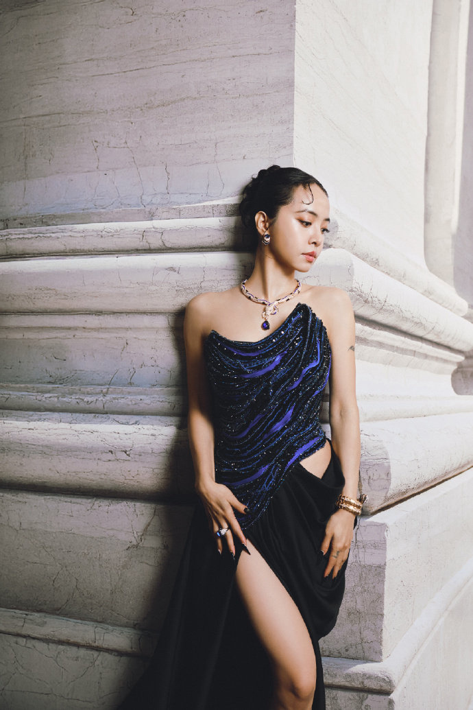佩戴品牌高级珠宝,身穿Tony Ward 2025春夏定制系列,尽显天后风范。