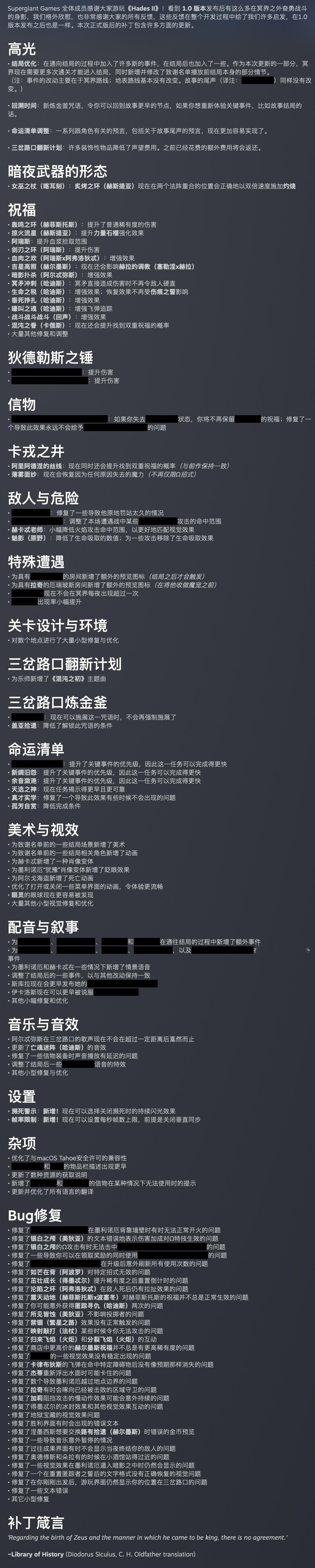更新重点包括:增加通往真结局及片尾后的新事件,扩充冥界路线剧情与场景演出;新增“新炼金斧咒语”,允许玩家重温关键剧情;优化角色相关预言进度;降低“三岔路口”装饰道具的花费。