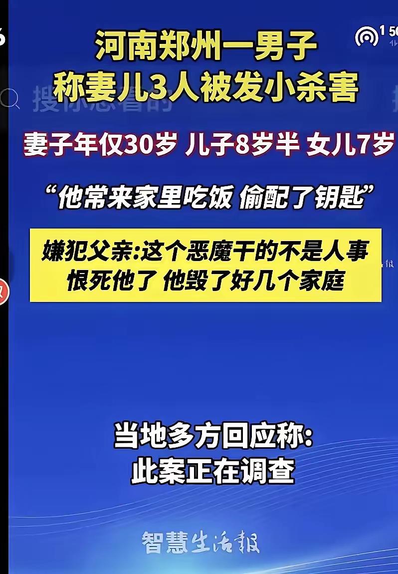 郑州这起悲剧!最狠的刀,竟来自最信任的“叔叔”! 8岁半的男孩、7岁的女孩,怎么也想不到,常来家里吃饭、还说要结娃娃亲的“叔叔”,会对他们下此毒手。刀杀、勒颈,甚至划烂孩子的脸,何等残忍。 更让人痛心的是,孩子爸爸还满心信任地央求这位发小去家里看看,这份从小长大的情谊,最后成了刺向全家的利刃。那句“在脑海,在心里,唯独不在身边”,藏着多少绝望和悔恨。 这哪里是简单的熟人作案,分明是给所有家长敲了警钟:对“熟人”的信任,绝不能少了底线。再亲近的关系,也要留意孩子是否真的愿意亲近,别让“熟面孔”成了伤害孩子的保护伞。 你平时会让孩子单独和相熟的人相处吗?对熟人防范,该把握怎样的度?来评论区聊聊!