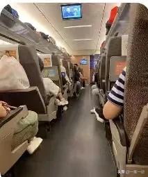 浙江杭州,男子坐高铁,突然内急,热爱工作的他,只好放下笔记本电脑,放在座位前面的
