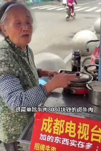 成都网红“蛋烘糕”阿婆,自曝自家卖的20一份的牛肉蛋烘糕,是花钱买的成品卤牛肉,这下打脸全是自己做的了吧。 这阿婆啊越挖越深啊,有人靠近她看一看,就出她的招牌“怂恿”营销模式,一句“你不得买,你吃不起,”开始反向操作,有的人不吃她这一套,直接气走了。 有的人就偏偏被她击中,“什么吃不起,那就给我做一份”,这不一个小伙子又被反向输出,买了一份,还被阿婆促销,你来个贵点的嘛。 脸皮稍薄一点的小伙子就选了个牛肉味,被周边人问到怎么这么贵,阿婆又开始大声发火了,“80一斤的卤牛肉,便宜你买的到啊?” 确实卤牛肉差不多是这个价格,敢情阿婆卖的牛肉,糖醋排骨,这些都是外面买的成品,回来直接铺上就卖了。这是情急之下开始自曝了。 最后,小伙子吃到一股放久了的怪味,直接丢了,这是花钱赞助了慈善事业啊,阿婆祝你慢走,下次又来。 (图片来自网络视频)
