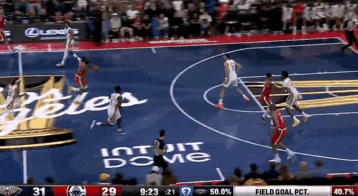 起飞!哈登反击助攻科林斯完成飞扣! 在今天NBA季中锦标赛快船对阵鹈鹕的第二节比赛中,哈登反击中将球高高抛起,科林斯心领神会完成空接飞扣! 在哈登的主导下,快船终于将比分扳平,慢热的快船,终于要开始发力了!