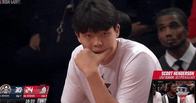 面露沉思!杨瀚森今天怕是上不了场了! 在今天NBA季中锦标赛开拓者对阵掘金的比赛暂停间隙,现场转播镜头给了坐在场边的杨瀚森长达10秒的特写镜头! 只见杨瀚森一手托腮面露沉思!在罗威复出之后,杨瀚森今天恐怕没有上场机会了!