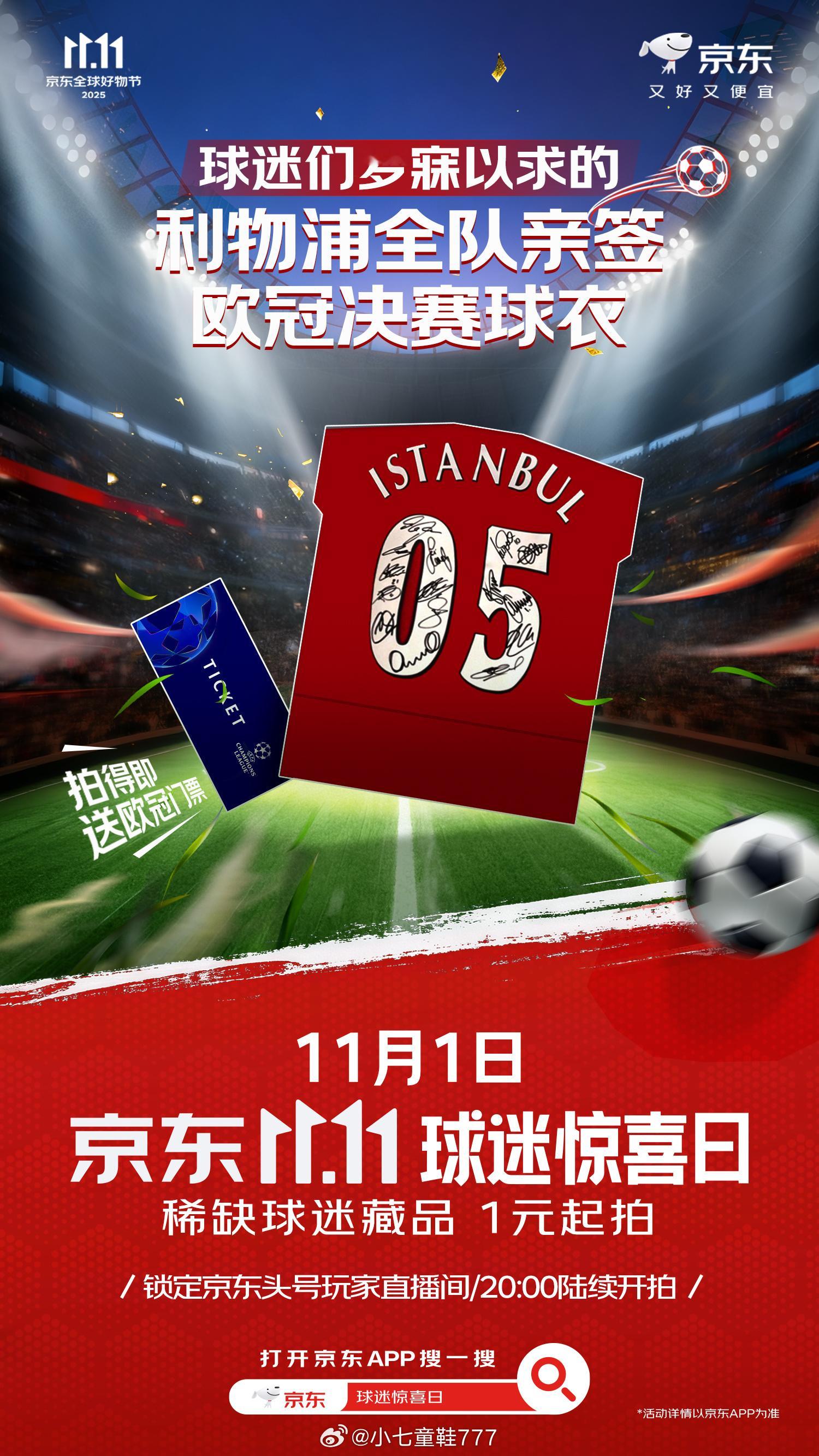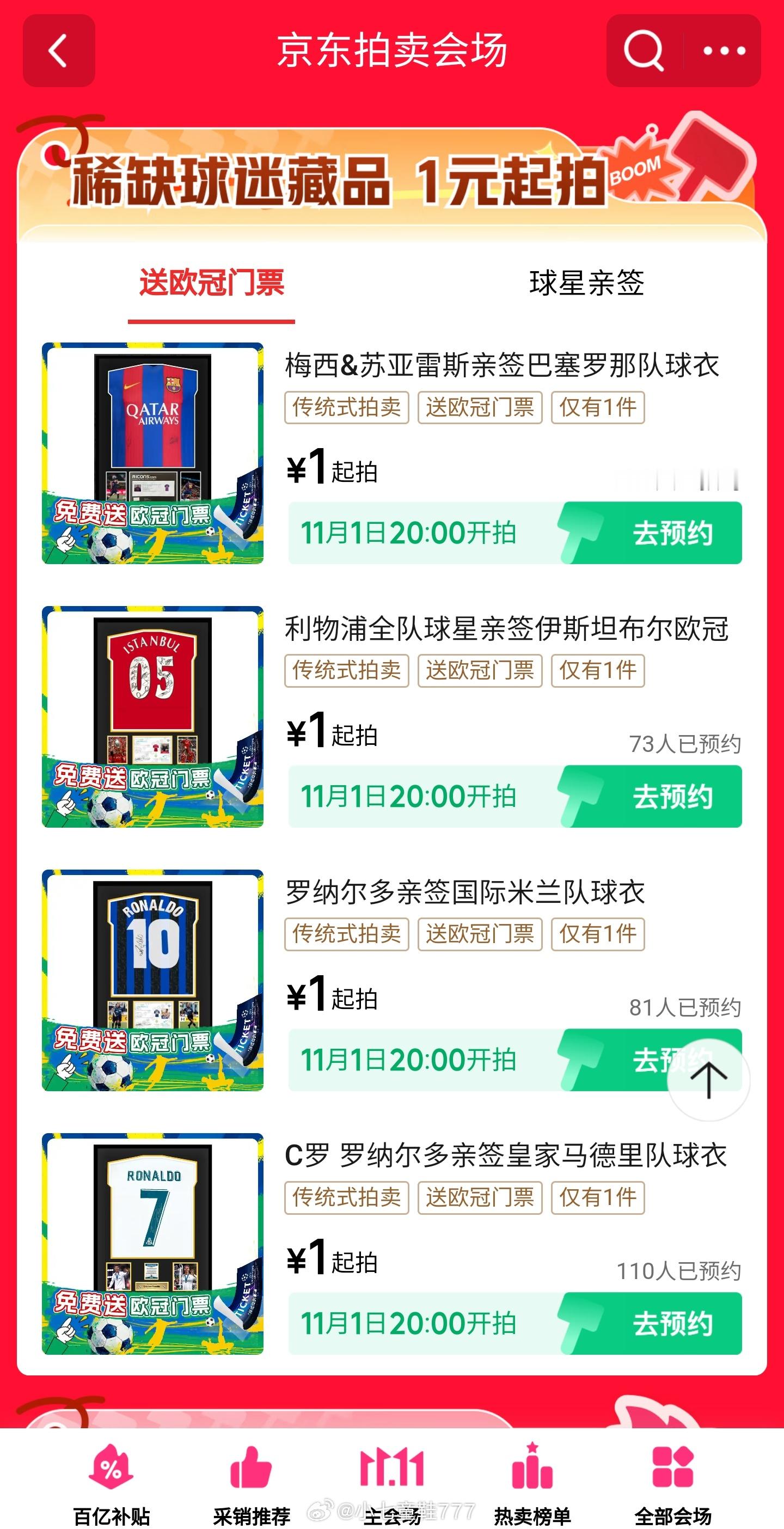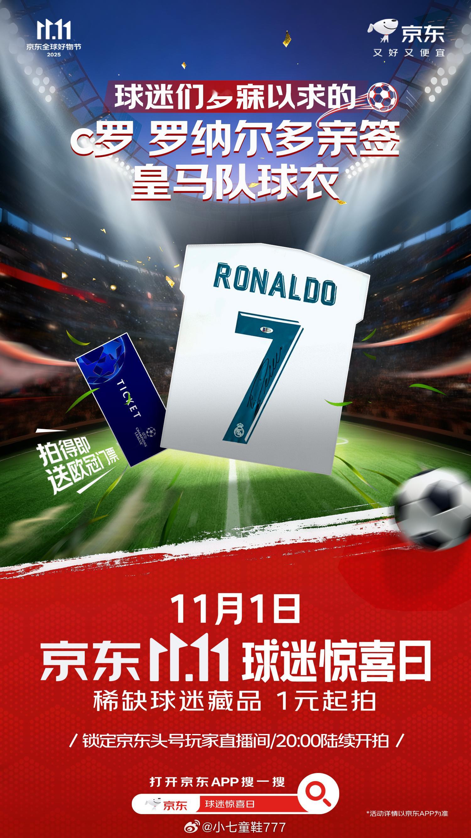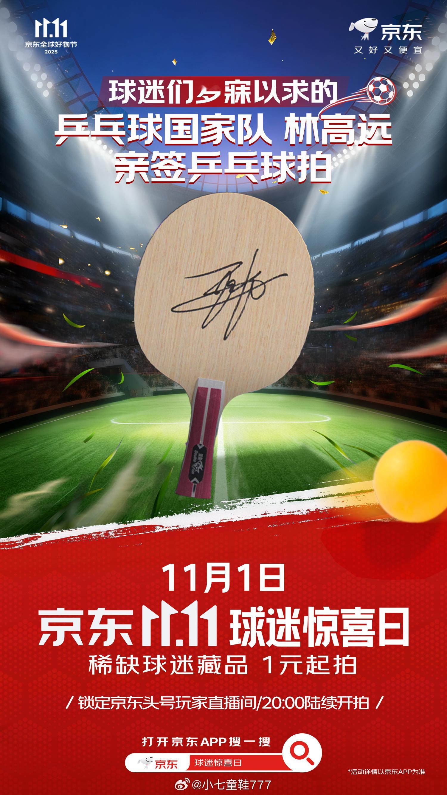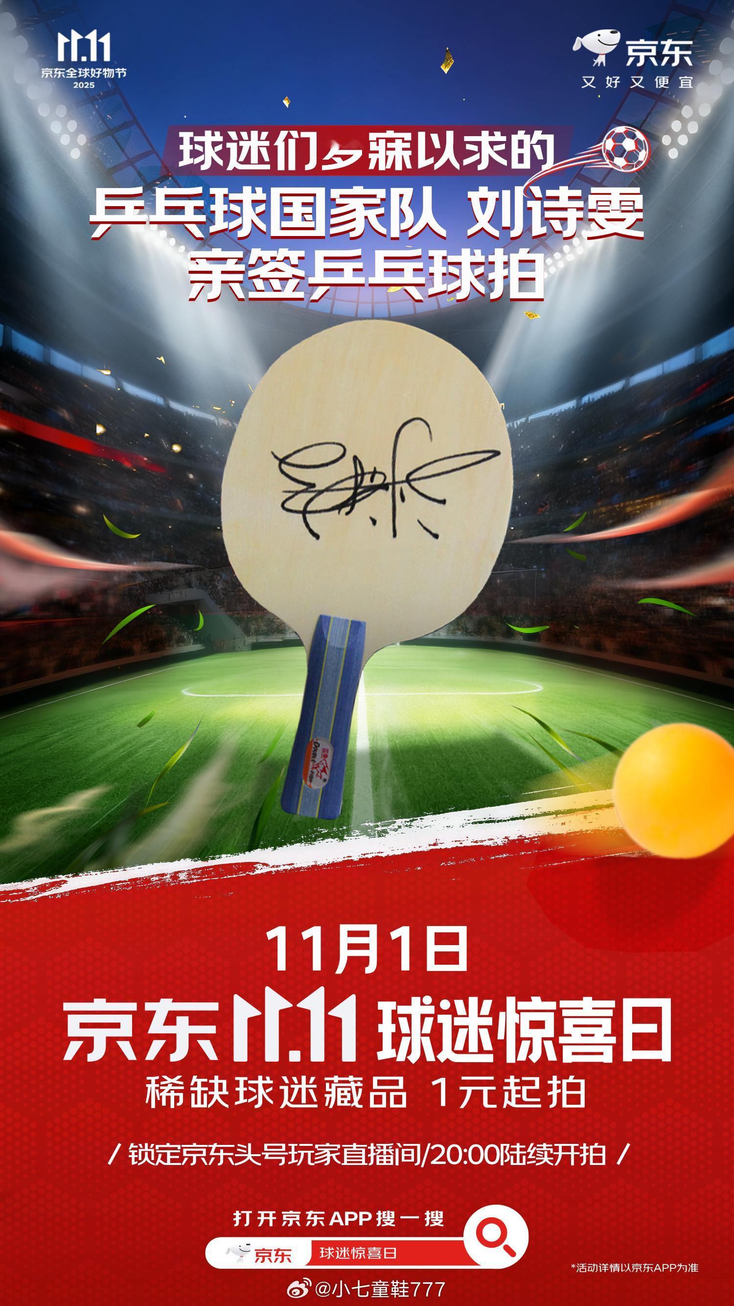 除了梅西C罗签名球衣,还有利物浦全队欧冠决赛球衣,国乒运动员刘诗雯和林高远的亲签乒乓球拍等等。你喜欢的球星,都在11月1日京东11.11球迷惊喜日!上京东APP搜索【球迷惊喜日】,球星们为大家准备的惊喜均已就位,只等你来!