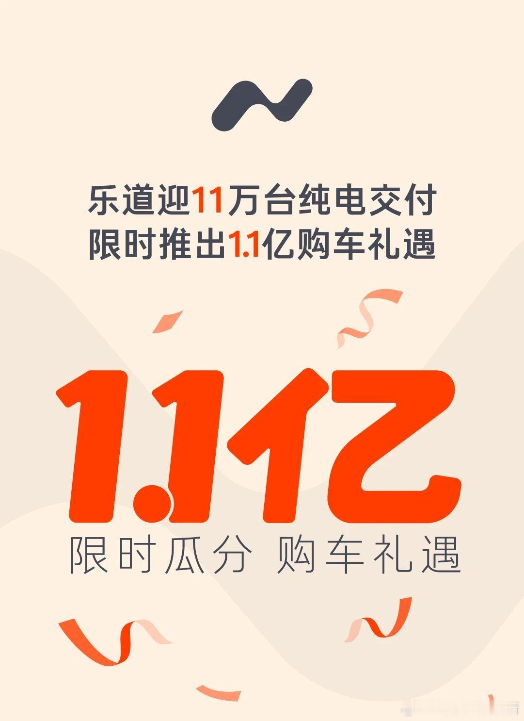 乐道汽车累计交付突破 11 万台,并推出限时 1.1 亿元购车福利活动。