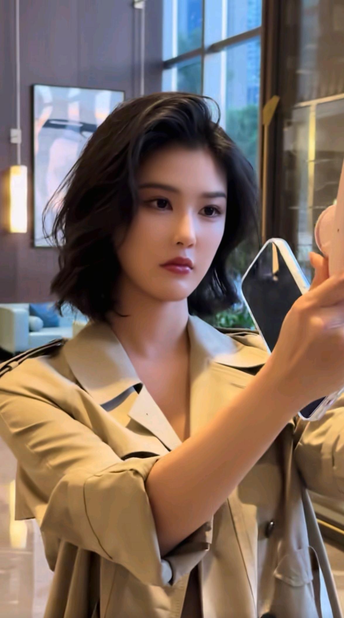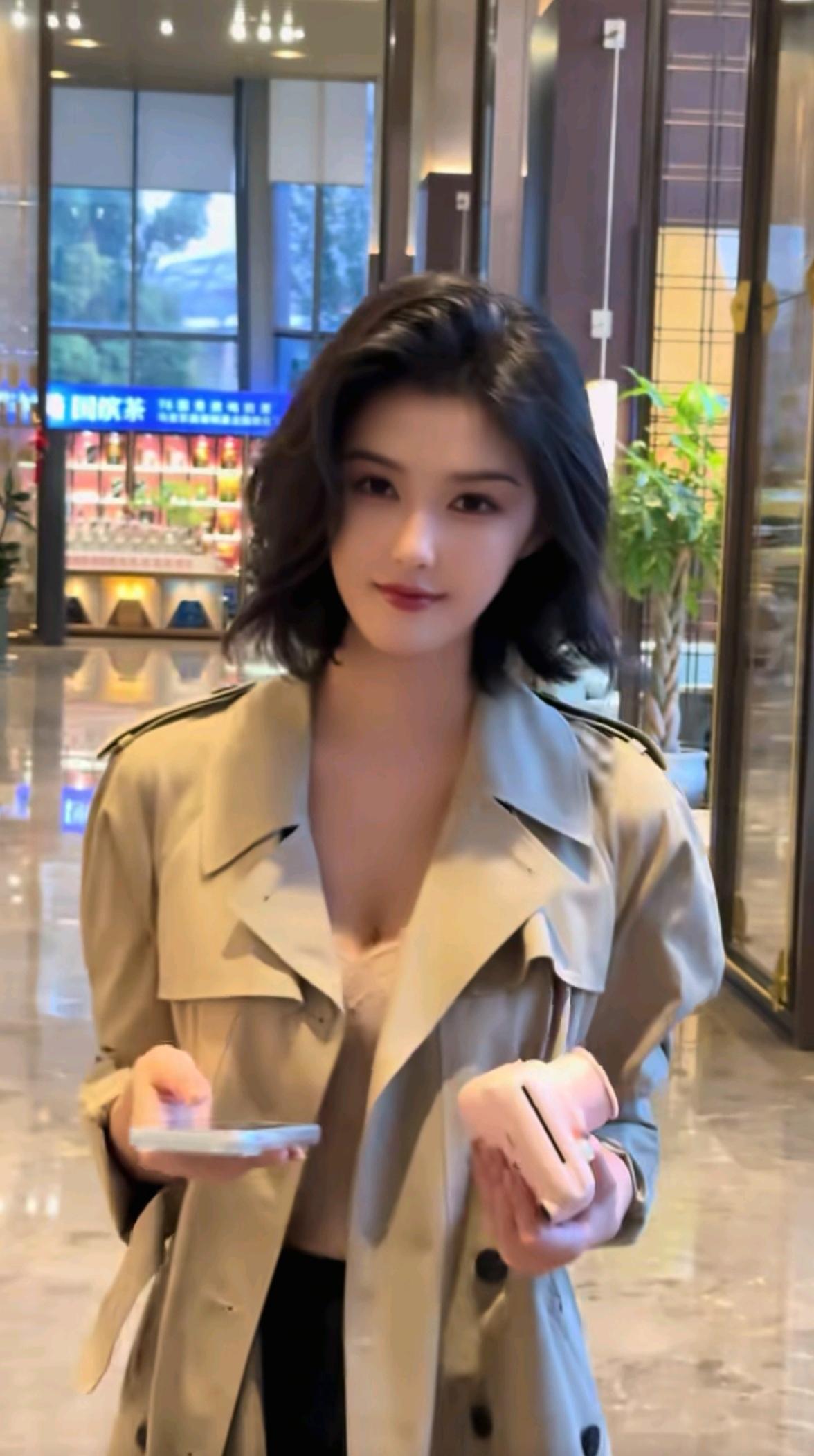 都市时尚女孩,手拿手机和粉色小包,微笑面对镜头。