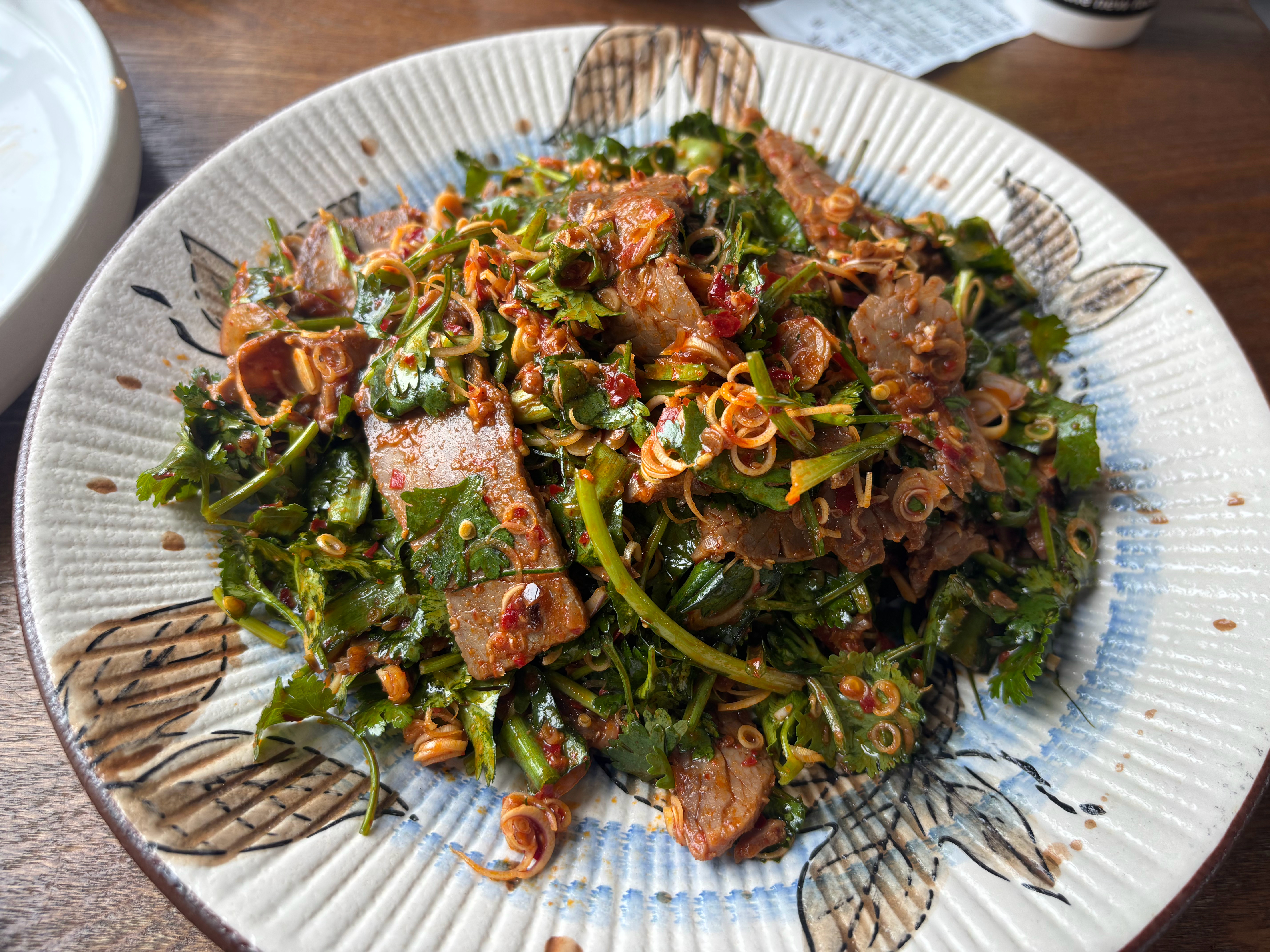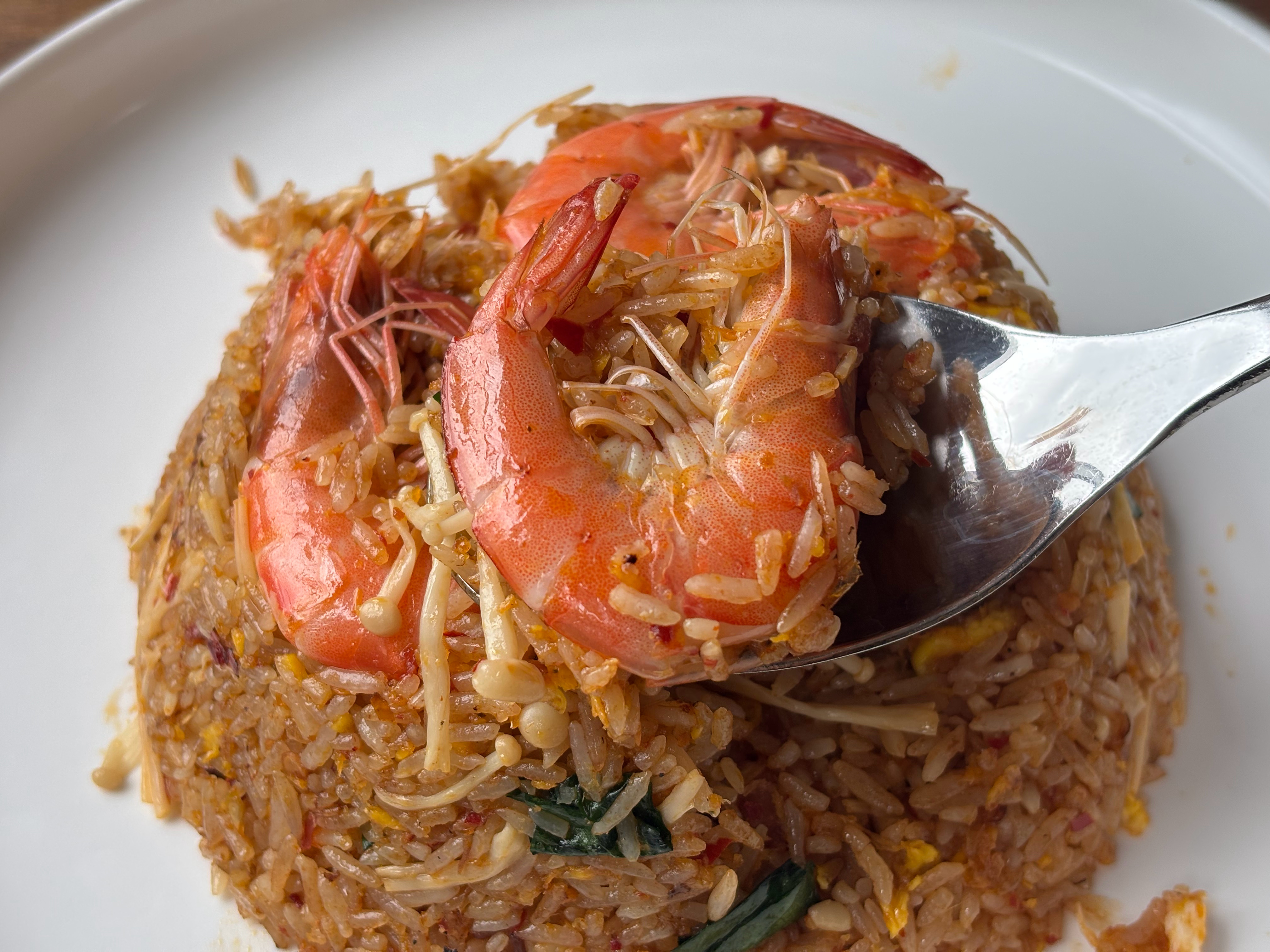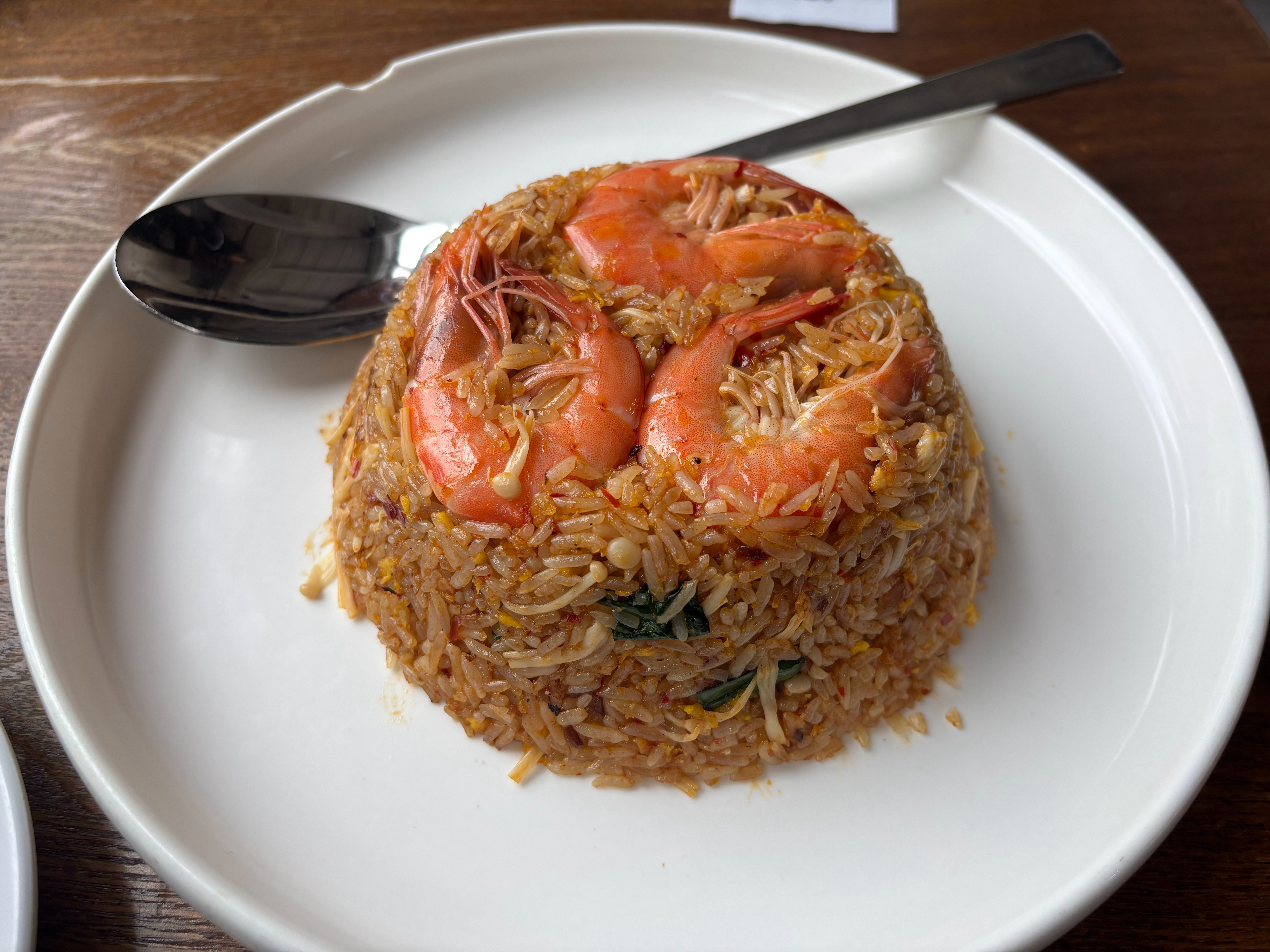 但有一说一,我们点了个香茅牛肉和冬阴功炒饭,味道的确可以,就是香茅牛肉等了好久好久,炒饭都吃完了才上,后面我发现了。全场只有我一桌点这个菜的时候没人做,直到有另一桌和我点了同样的香茅牛肉,厨师终于开灶了(因为和我点同一个菜的那一桌比我迟了二十分钟才进来,但是却和我同时上的香茅牛肉)