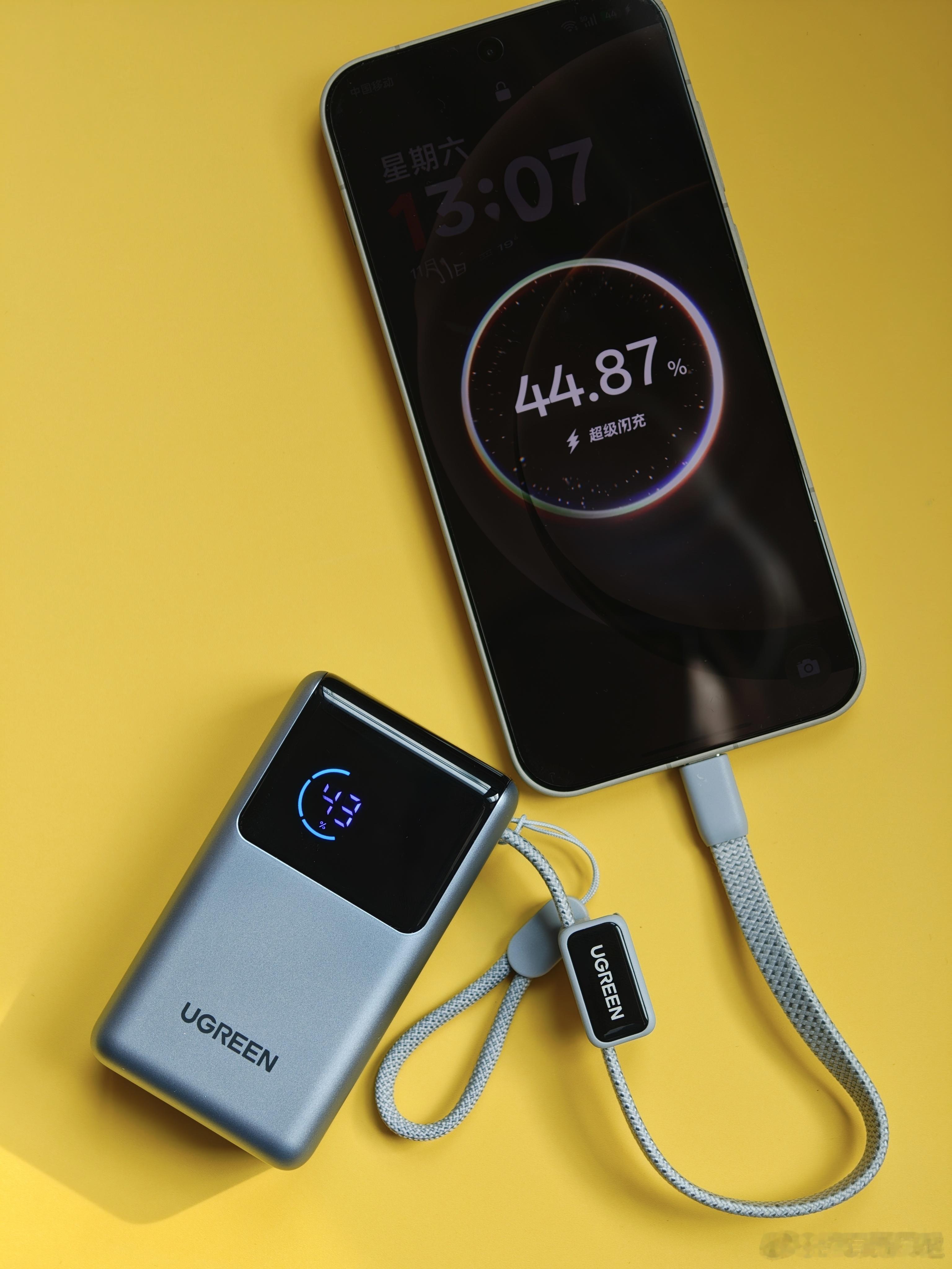 入手一个「绿联能量湃 Pro 55W 充电宝」,这次咱就图个小巧便携、安全实用,它的容量为10000mAh,支持最高55W快充,而且注意看图二,它插在我的一加15上也是显示超级闪充的哦。