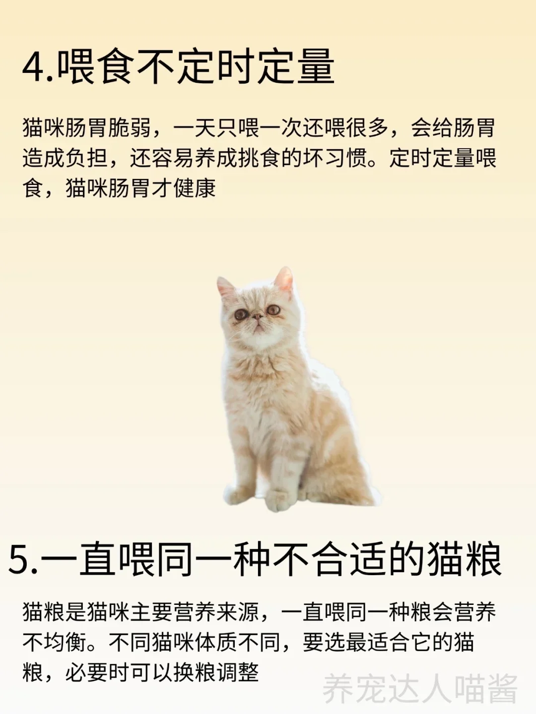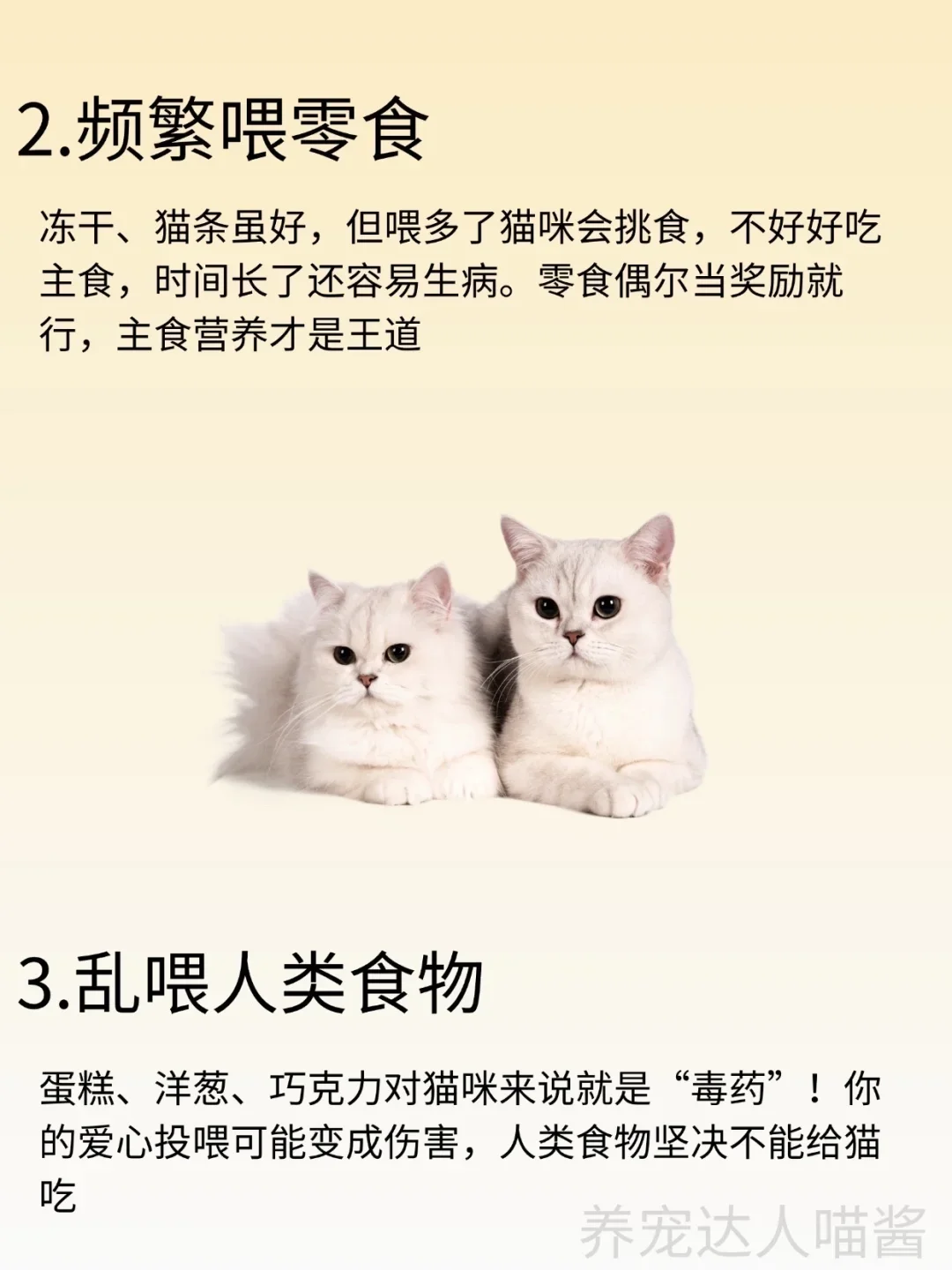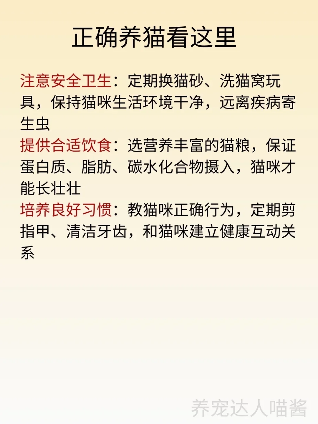 😿铲屎官注意!这 5 种 “伤害式” 养猫行为别再做了! 想和猫咪好好相处,这些行为千万要避开~❌长时间看猫眼睛:猫咪会把凝视当威胁,改用眯眼、眨眼互动才是友好信号;❌频繁喂零食:冻干、猫条喂多了会让猫咪挑食,主食营养才是关键,零食偶尔当奖励就行;❌乱喂人类食物:蛋糕、洋葱、巧克力对猫咪来说是 “毒药”,人类食物坚决不能喂;❌喂食不定时定量:猫咪肠胃脆弱,定时定量喂食才能让肠胃健康;❌一直喂不合适的猫粮:猫粮是主要营养来源,要选适合猫咪体质的,必要时换粮调整。 正确养猫要注意安全卫生、提供合适饮食、培养良好习惯,这样才能和猫咪建立健康的互动关系