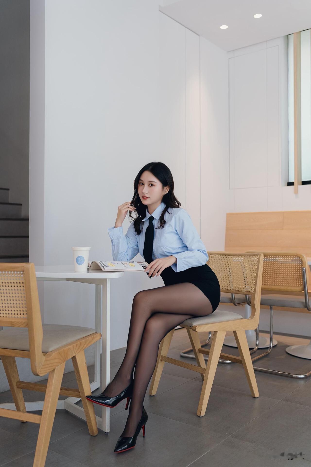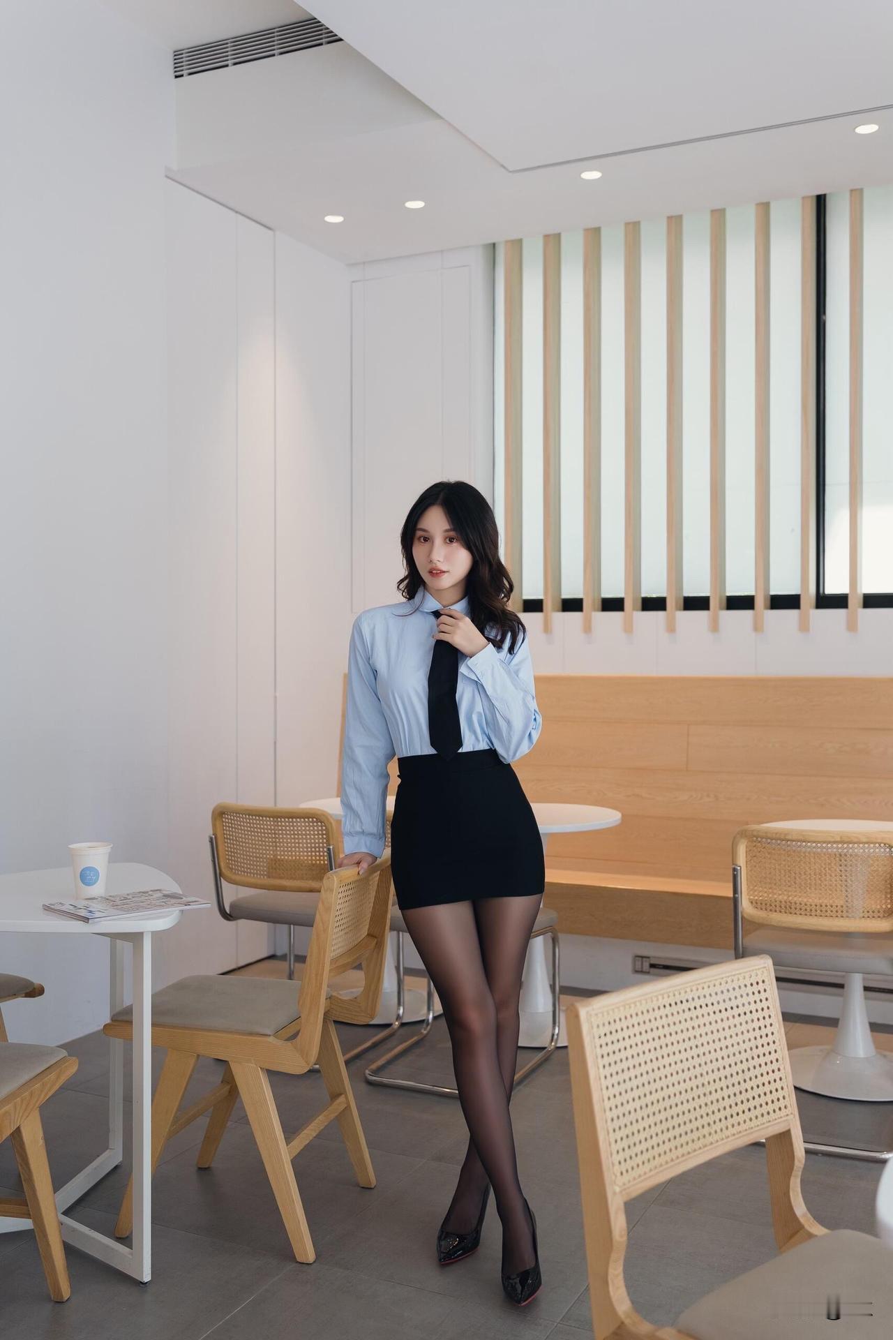 宝子们!今天这套职场look我真的爱了~浅蓝衬衫+黑色领带,干练又带点小性感,下搭包臀短裙,把身材曲线衬得刚刚好~黑丝配红底高跟鞋,瞬间拉长腿部线条,走在路上都超有气场! 在简约的工作室里拍,拿着咖啡和杂志,感觉自己就是都市丽人本人~你们觉得职场这样穿合适吗?