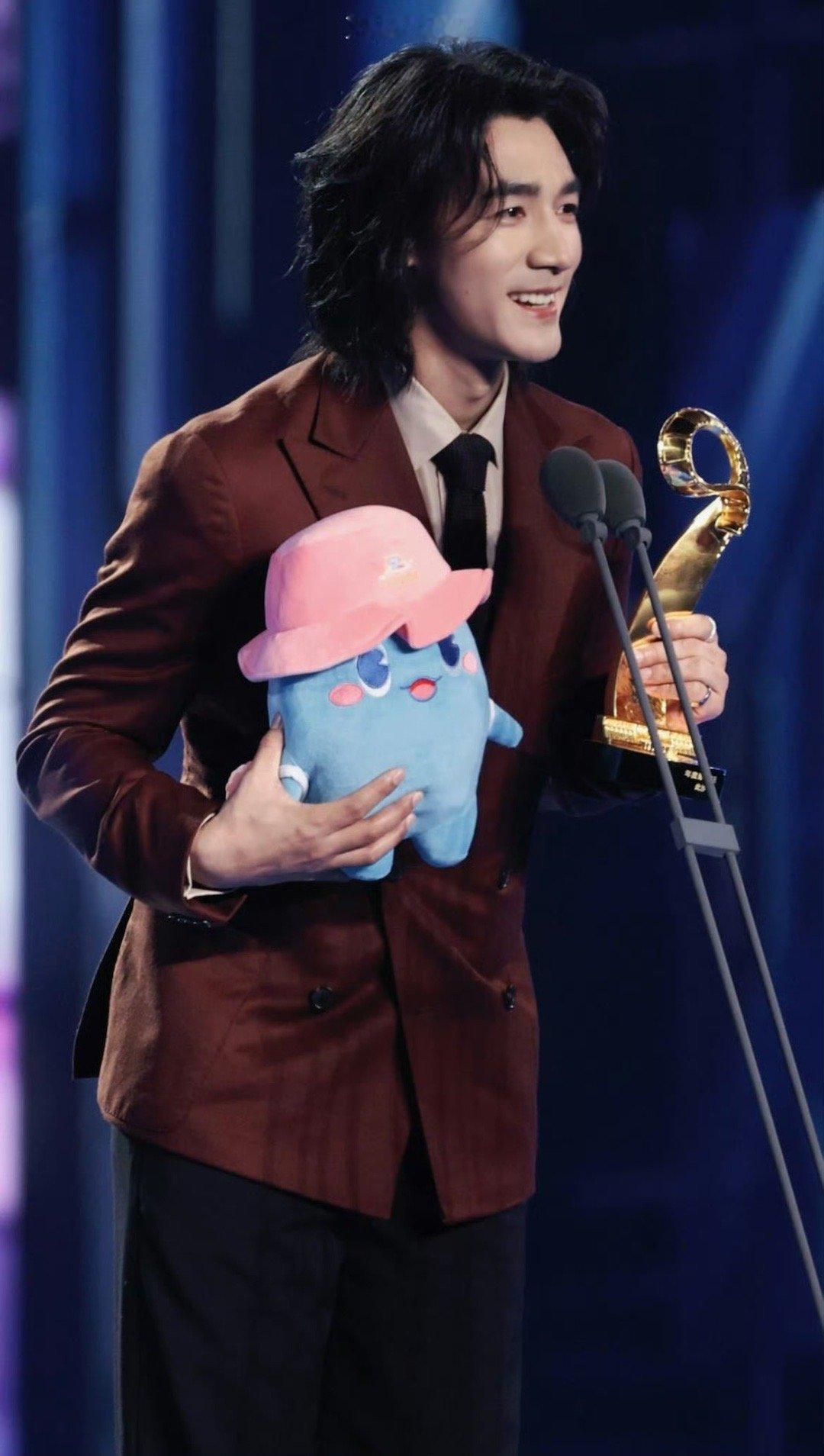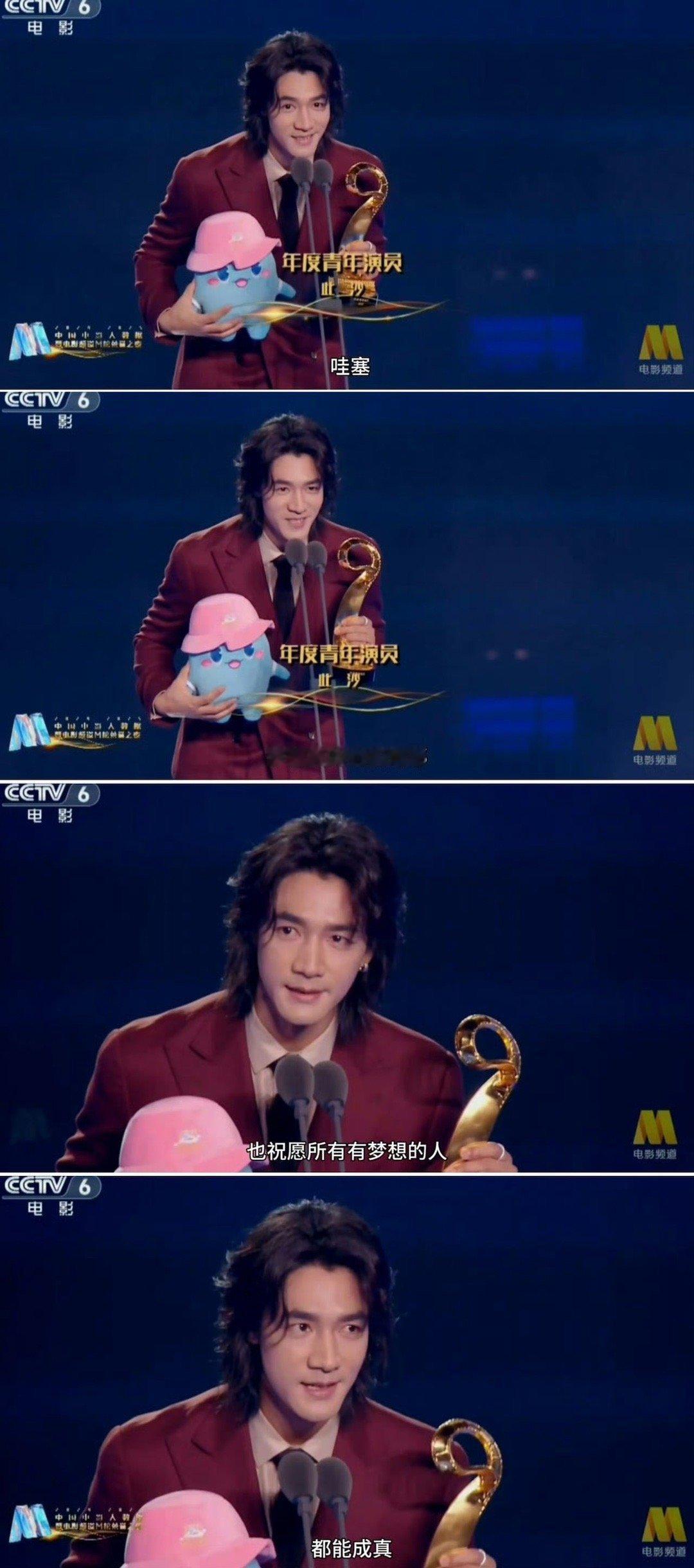 此沙获奖鲜衣怒马具像化领奖台上,红衣此沙如画中走出的少年郎。微风拂过发丝,他分
