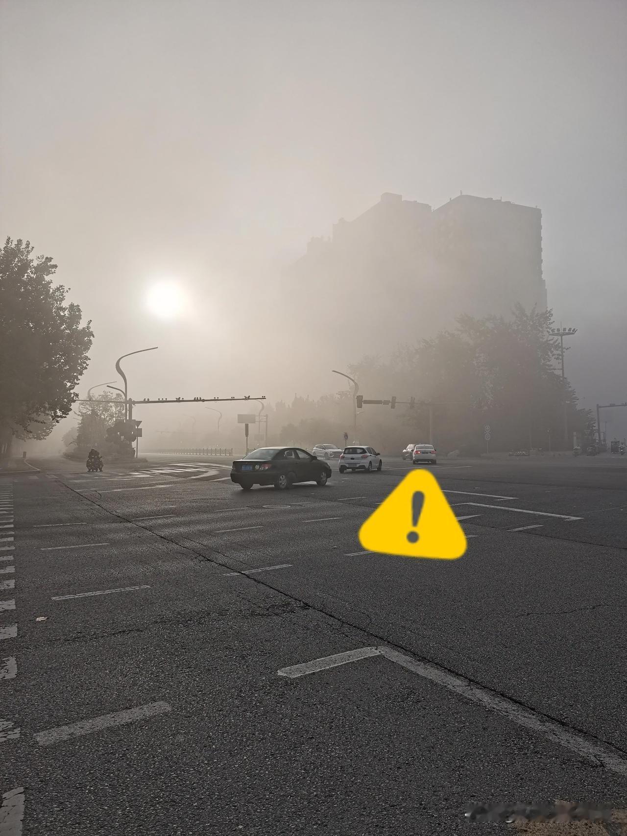快看! 今天的天气。。。 今早一推车门,直接撞进雾里—— 城市像被按了柔焦键,