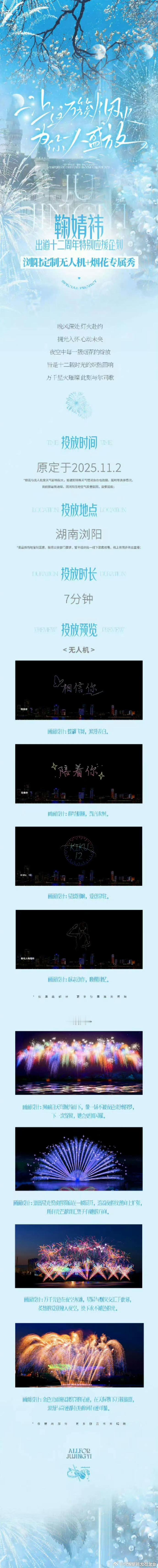 鞠婧祎出道12周年粉丝应援鞠婧祎出道12周年特别应援企划 蝶翼拂过烟火,标志动作定格,是她十二载的华丽绽放。