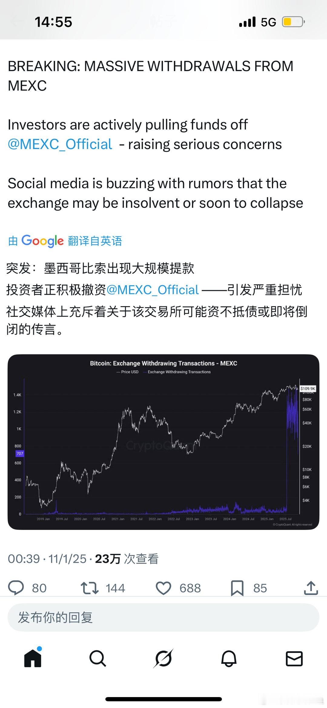 继300万USDT冻结风波后,抹茶交易所(MEXC)正面临一场更为严峻的信任危机。由于平台对盈利大户的强硬风控策略引发广泛恐慌,投资者信心正急剧流失,并已转化为实质性的挤兑行动——社交媒体监测显示,抹茶正出现大规模提款潮。
