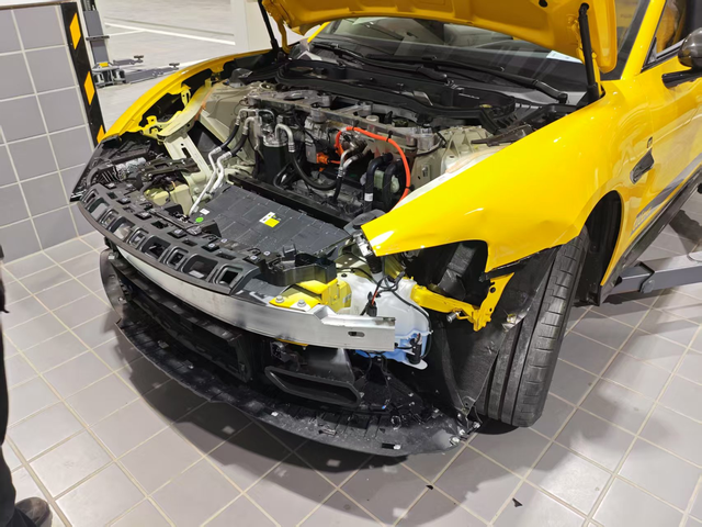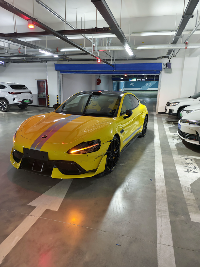 su7ultra提车四小时全国首撞 "提车第一天中午,提车之后,非常开心,虽然有新手保护模式,马力最大三百皮,但是底盘质感非常👍,侧翼支撑很灵敏,但是在地库环氧地坪遭遇了首次事故。当时地面水渍反光,在转弯回方向时电门稍重,车尾突然向右滑动。虽然立即反打方向,车头还是撞上了停放在立柱旁的白色福特福克斯。 碰撞瞬间时速约 18km/h,对方车辆右侧雾灯出现碎裂,屁股上墙,左前碰撞停车场立柱,我的SU7左前保险杠碎裂、左前翼子板变形、左前大灯碎裂。值得记录的几个细节: 事故发生在地库B2层拐角,该区域为新修环氧地坪。 被撞福特福睿斯正常停放,车主赶来时表示"没想到停着也中枪 售后检查确认防撞梁无变形,维修清单显示需更换前保上体分总成13824、左翼子板总成 2651 、环视摄像头 210、前向毫米波雷达 90、主轮总成 3070、四轮定位 从现场情况看,车辆溃缩吸能设计确实起到了作用:碰撞后机盖仅轻微翘起,A柱区域保持完好,车门开关顺畅。但必须说明的是,对方福克斯的维修费用(约 10000),应该是受损比较严重。 这次事故让我意识到:大马力车在低附着力路面的容错率比想象中低,地库驾驶时建议开启牵引力控制系统。希望大家引以为戒——再强的被动安全,也抵不过主动控制好右脚。