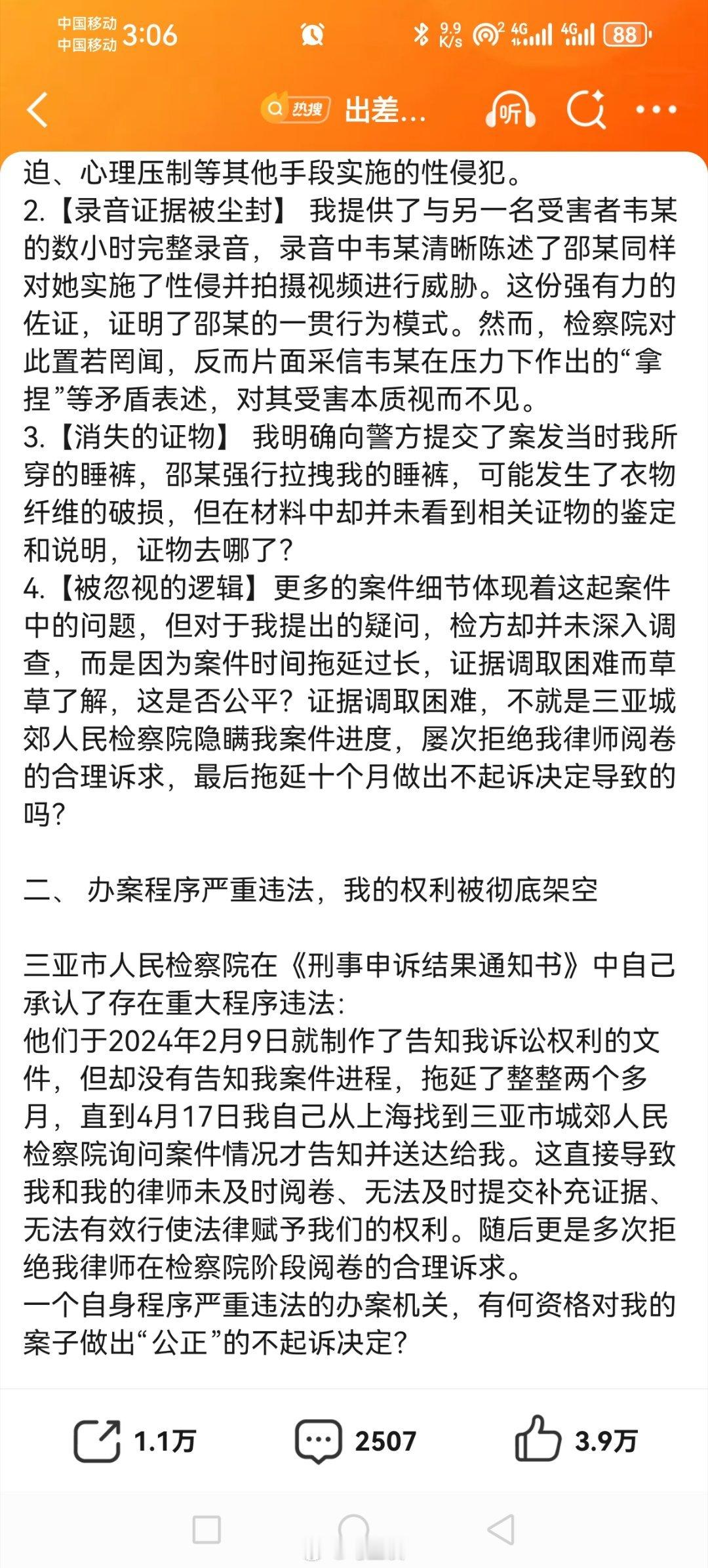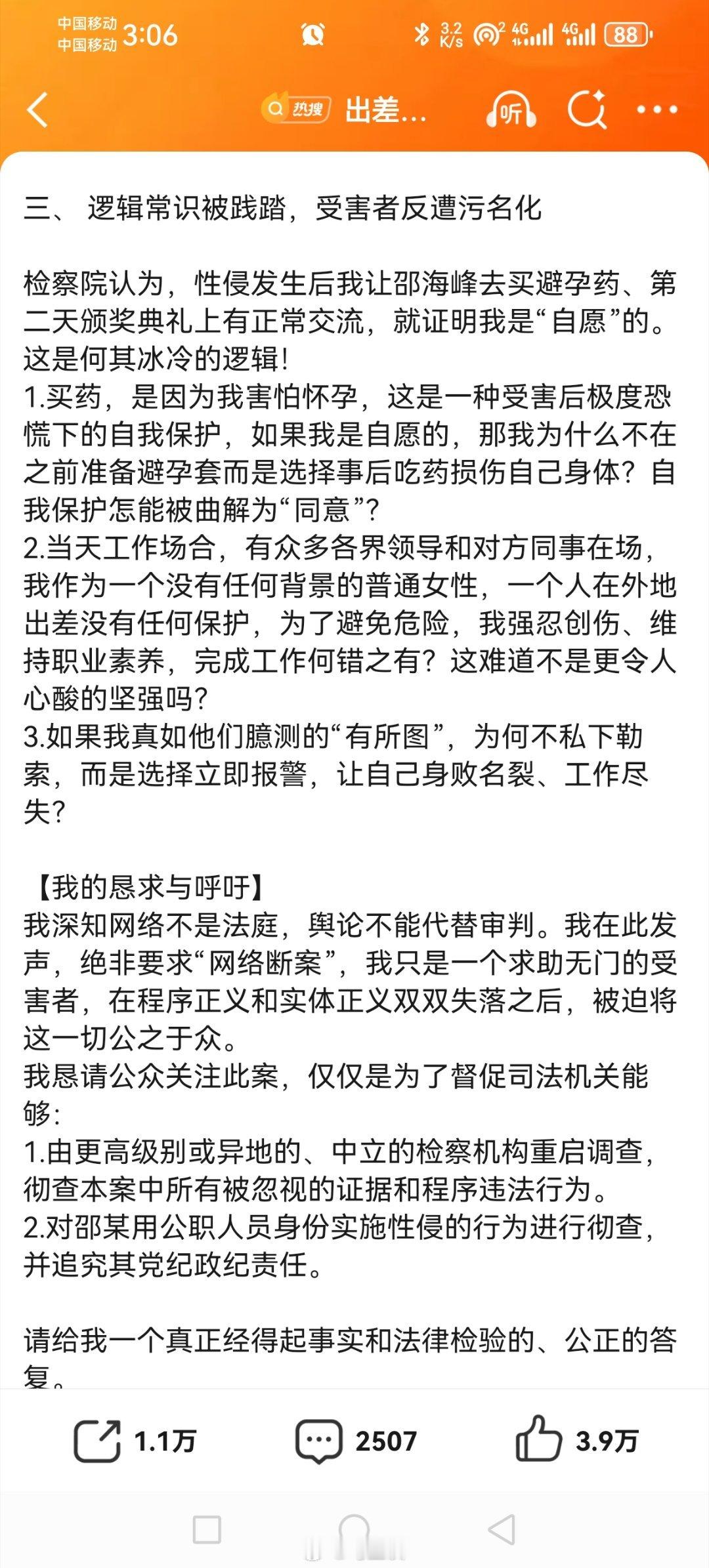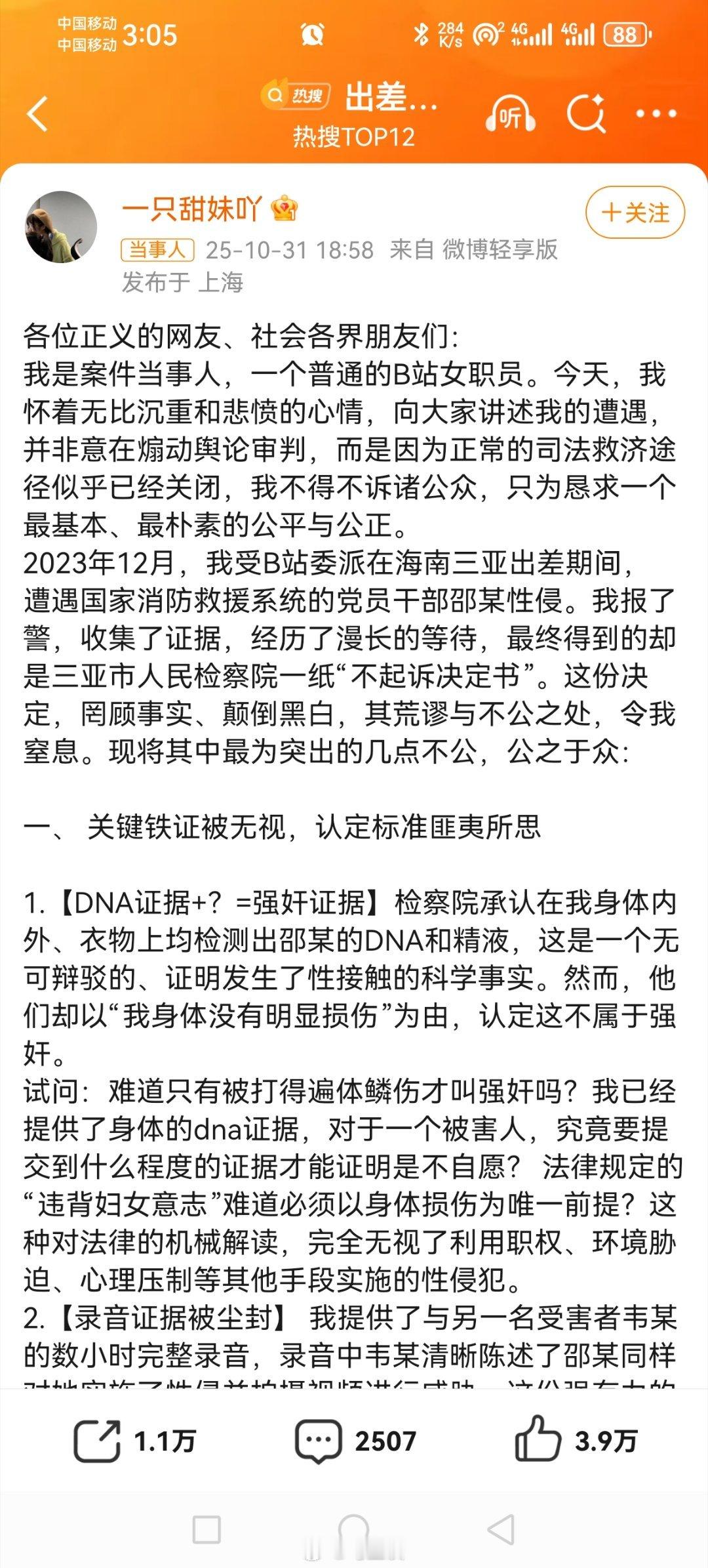 出差遭性侵检方不起诉女子发声 看这描述,不了解具体情况的网友先别站队,建议让子弹再飞一会儿。个人更信检方![吃瓜]