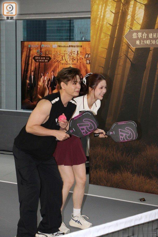 無綫台慶劇《金式森林》於香港播出3星期,內地網站已經劇終,監製林志華宣布好消息,表示內地社交平台相關話題曝光量超過7.5億,成績表十分亮麗。今日(1日)一眾演員拉隊去打Pickleball,陳星妤落場即脫外套,大晒運動Bra Top,陳庭欣緊隨其後亦脫,擺明鬥波,陳星妤多次打中場邊的教練,站在旁邊做評述的陳曉華擔心中波餅多次提醒星妤。花式對決,陳浚霆孭住陳星妤,羅天宇孭郭栢妍對打,陳星妤按住心口仍多次胸壓向陳浚霆,陳浚霆面露尷尬。另一個花式是翹手對決,羅子溢陳曉華翹手,對決何廣沛與莊子璇,最終羅子溢和羅天宇接受懲罰,子溢公主抱曉華,天字抱起郭柏妍做深蹲。