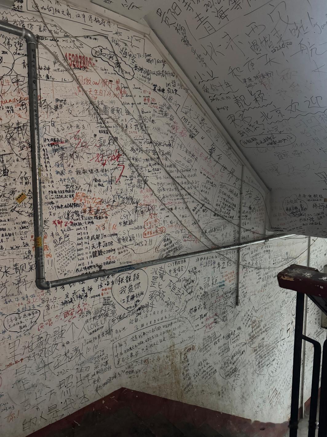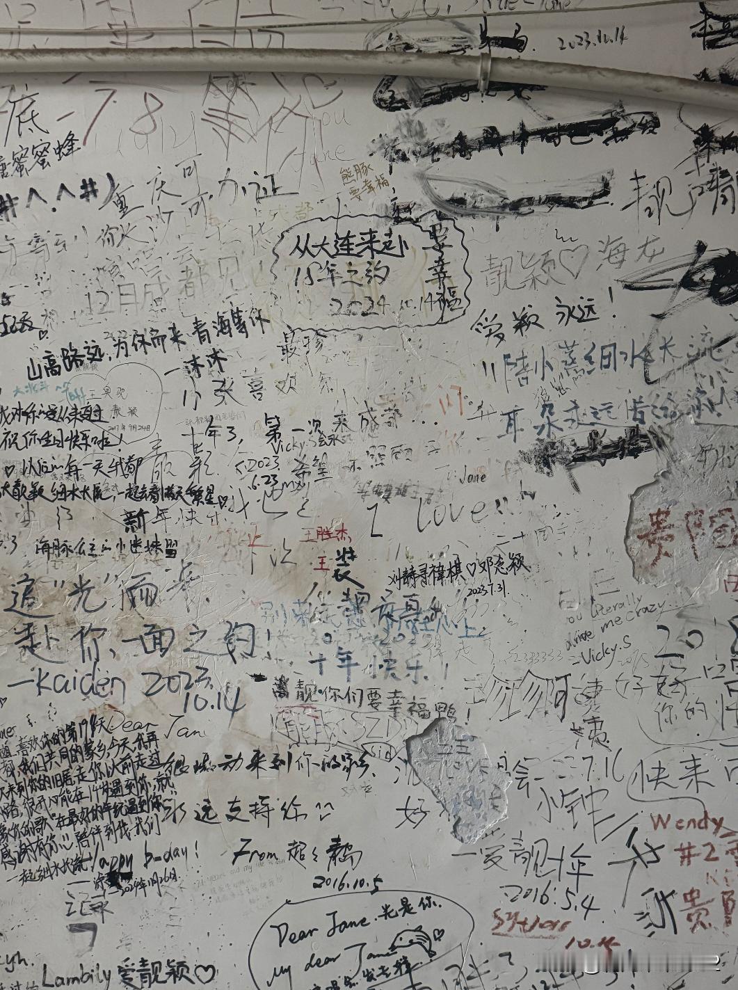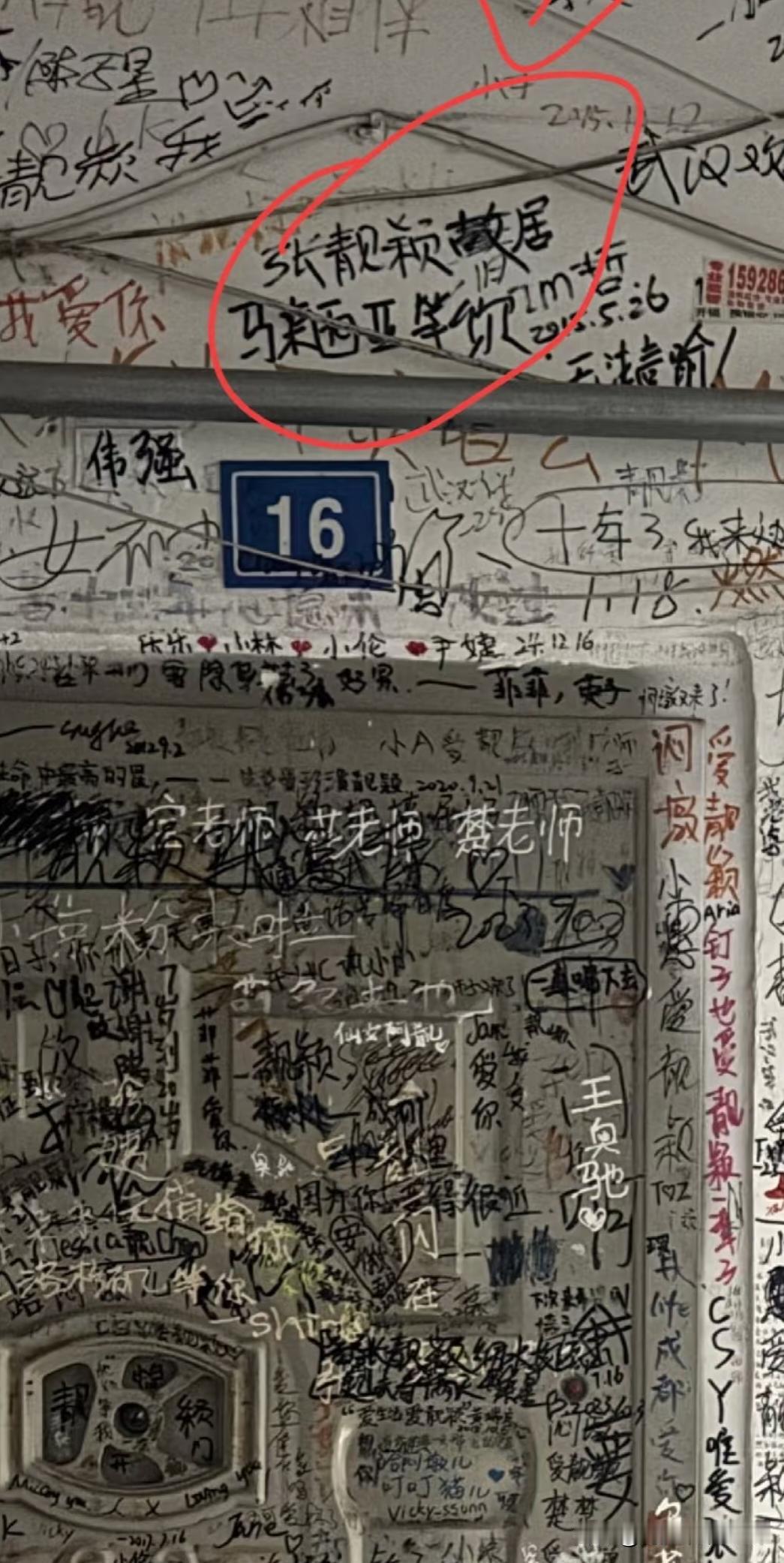 张 靓 颖 旧 居(成都)。在外墙上全部都留下了打卡的痕迹,好像小广告一样,细则一看: 全部都是粉丝的留言。 她们应该很早就适应了,毕竟已经20年了,早期清理过很多,从现在的图看,基本都是15.16年之后留下来的,说明后来从居民、小区、管委会等,基本保持默契了。 8月好像还有媒体去采访过,大家很淡定!