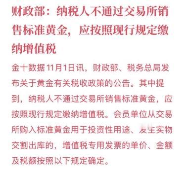 中国税务总局:机构买入实物黄金加工缴纳增值税,并向购买者开设普通发票,不得开具专用增值税发票。 机构投机黄金,增值税即征即退。 意思就是普通人试图购买实物黄金保值,税务成本增加了,也就是更贵了。 再通俗点儿说,就是普通人别跟风买黄金了! 另外普通人买个万儿八千的黄金等增值,真不如少喝杯奶茶,少吃顿晚饭呢。一天省20,一年7000多,买一万块钱的黄金,一年能增值7000吗?