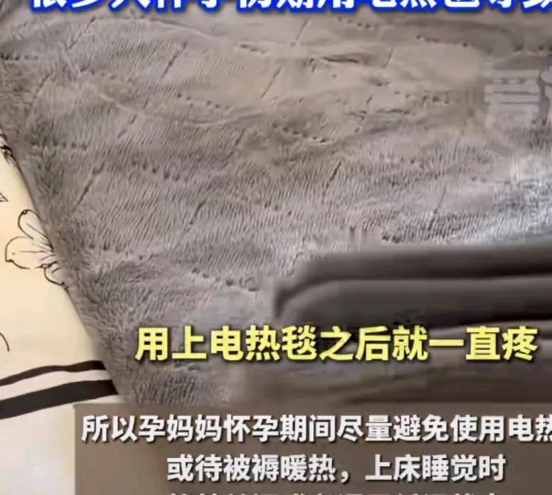 女子孕早期使用电热毯差点出意外,她说肚子疼的厉害,去医院检查, 医生说子宫内出现2厘米血脓块, 女子说我没做啥乱七八糟的事啊, 就是用了电热毯就开始肚子疼的。 医生说就是这电热毯惹得祸,你再多用两天孩子就“电”没了。很多人怀孕初期用电热毯导致胎停。 孕早期尽量不用电热毯, 孕妇热蒸拿会增加流产的风险。 可以在加热后关掉电, 会降低风险, 看来干啥都要注意啊!