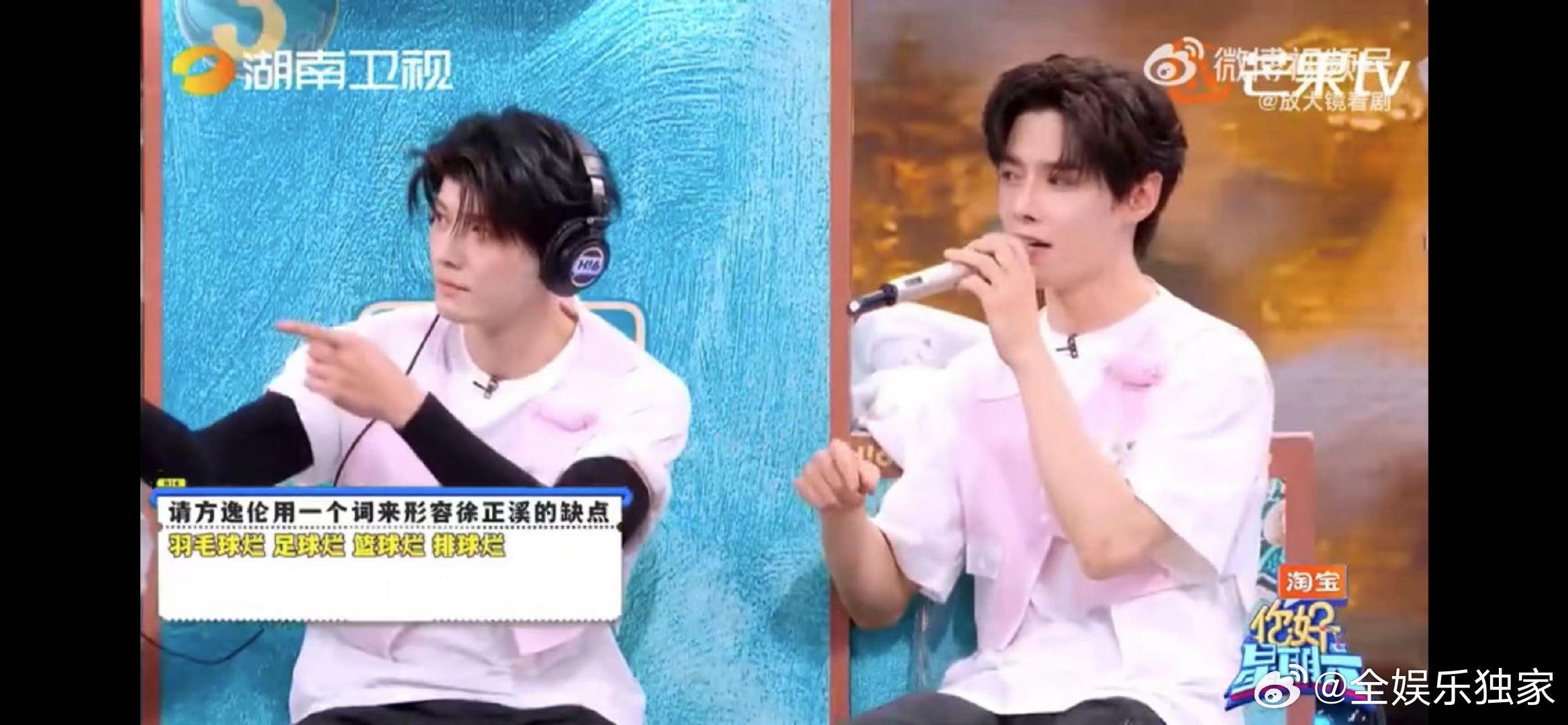 徐正溪别听是恶评 你好星期六默契游戏环节方逸伦开启 “吐槽模式”!形容徐正溪缺点滔滔不绝,还好最后留了 “篮球还行”,溪哥别听前面的,这才是你的倔强底线!
