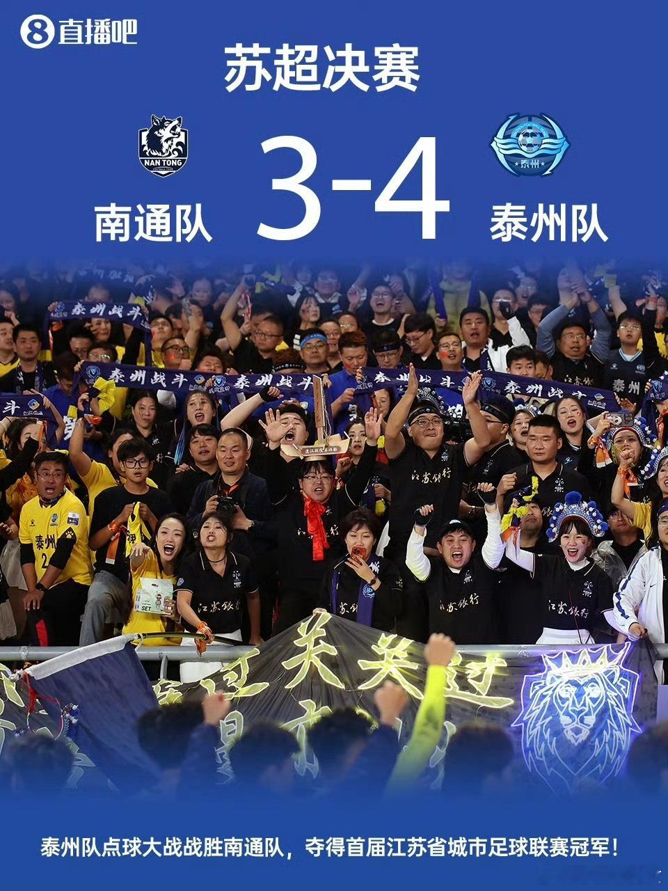 苏超泰州队冠军 恭喜泰州队获得首届苏超总冠军!!!真正的逆袭王者!从常规赛第六到巅峰夺冠,一路走来实在是不容易!在6万球迷的见证下,点球大战就是黑马逆袭的高光时刻!苏超决赛直播