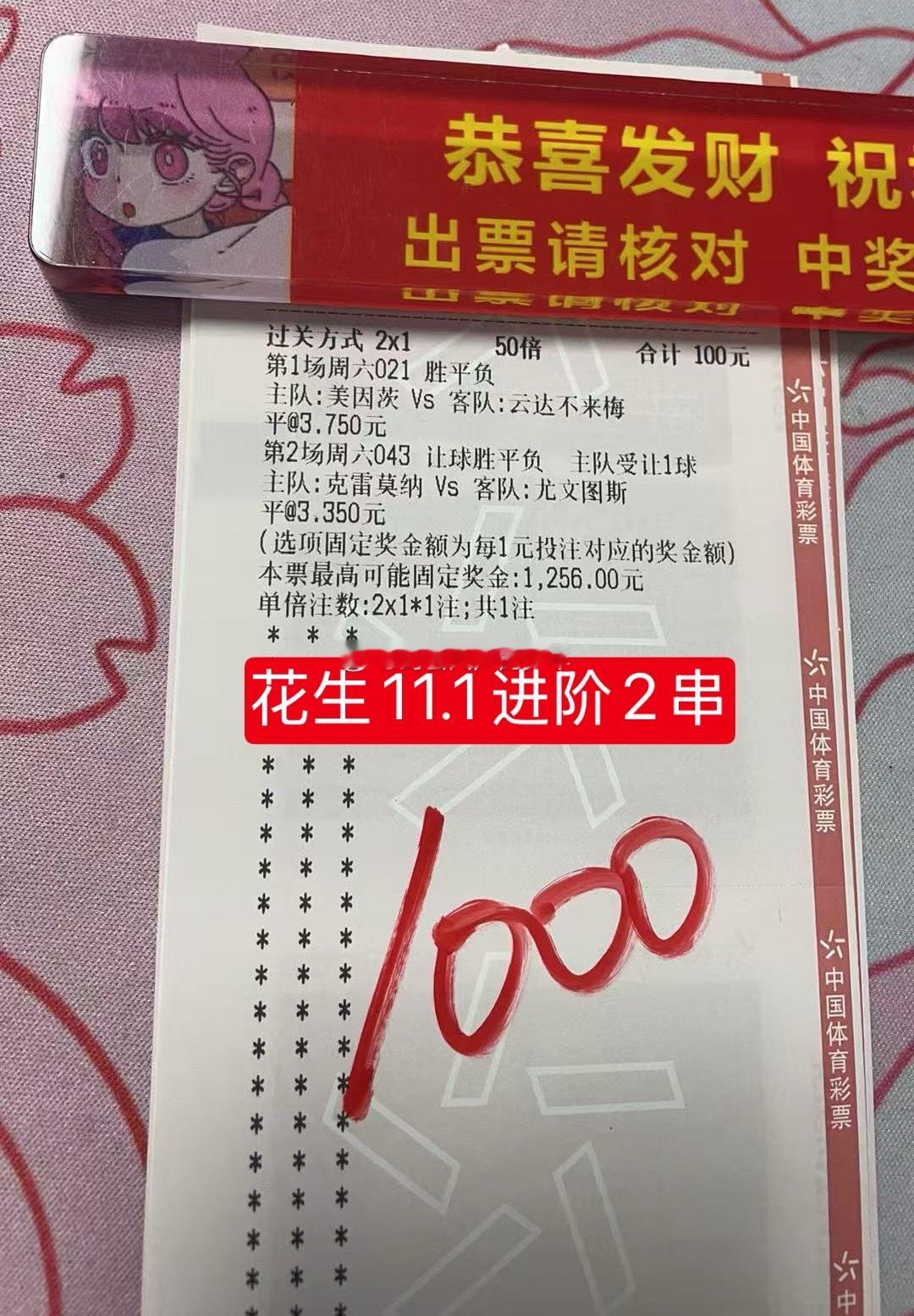 来了!花家军开门红!!12.5倍的晚场进阶命中!!!!又是开门红!前两天刚中10倍进阶!昨晚又中了12.5倍的进阶!!!这就有点舒服了,上一个10倍完全不够吃的,但是过了两天又来了一个12.5倍就很舒服!!而且是五大联赛大家就买的比较多,带领大家一起红蛋的感觉就很好!!!