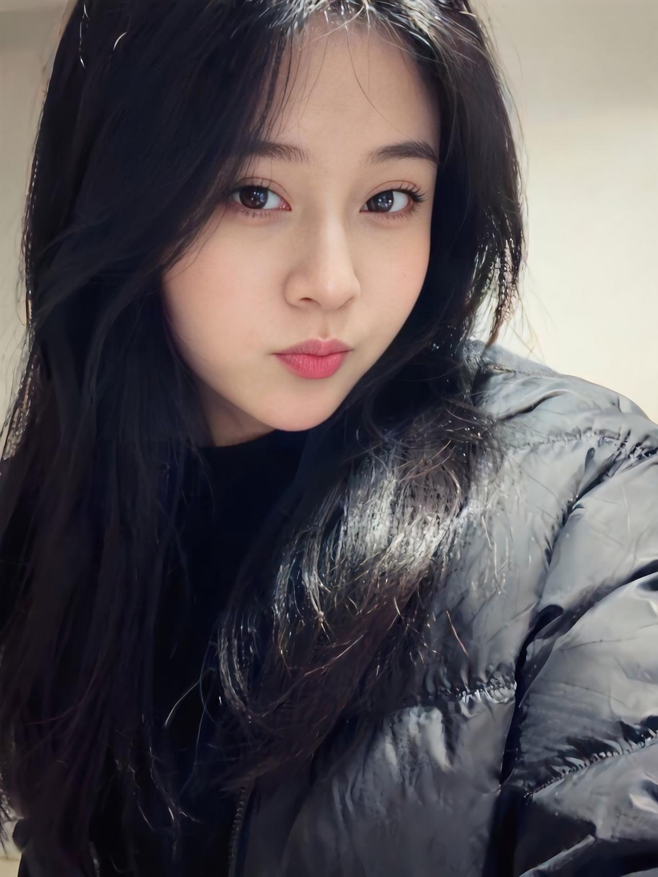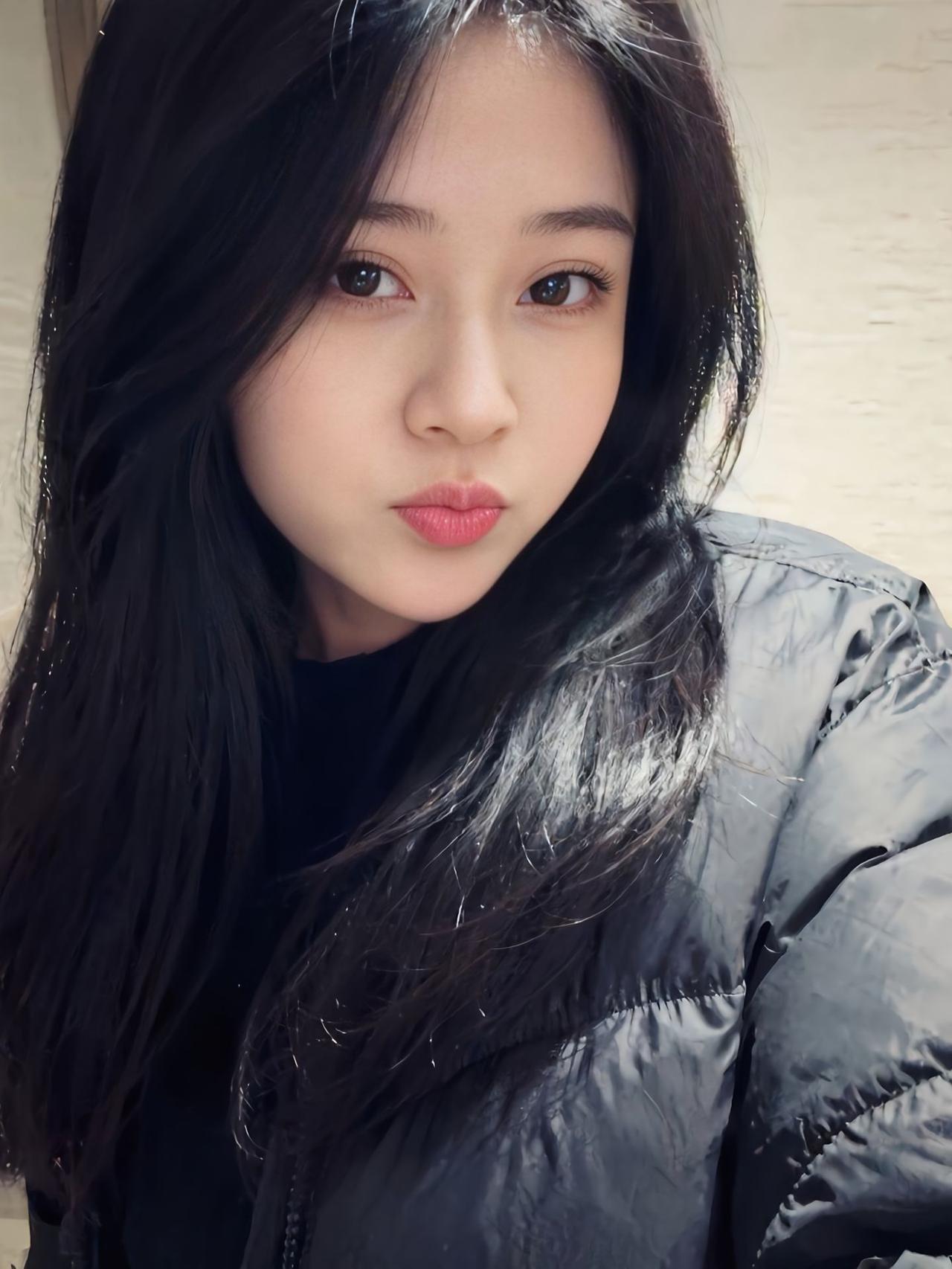 冬日暖阳下的甜美少女,黑发飘飘,红唇微启,温暖如春。