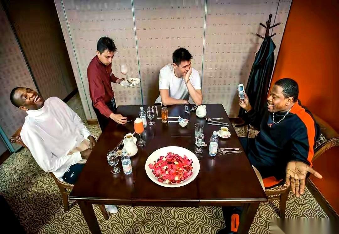 当年在休斯顿,想见奥尼尔、麦迪这些巨星,去哪儿成功率最高? 不是球馆。 是姚明开的中餐馆。 看看这张老照片,姚明请穆大叔吃饭。这哪是吃饭啊。 这是在异国他乡,一个中国大个子,用最中国的方式,在建立自己的社交圈,建立自己的码头。 后来“姚餐厅”年营业额干到近千万美金,成了当地的网红地标。 你以为光靠名气就够了?天真了。 能让那帮吃惯了牛排沙拉的亿万富翁,心甘情愿跑来吃一盘左宗棠鸡,靠的是主人家的人格魅力。 说白了,这就是顶级的情商。 是那种“有我一口饭吃,就有兄弟们一口汤喝”的格局。 很多人只看到了姚明在球场上的技术和身高,其实真正让他成为一个“符号”,让中美两边的人都服气的,是这种超越篮球的东西。 球商的最高境界,有时候真不在球场上。