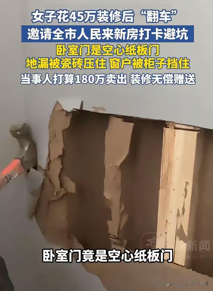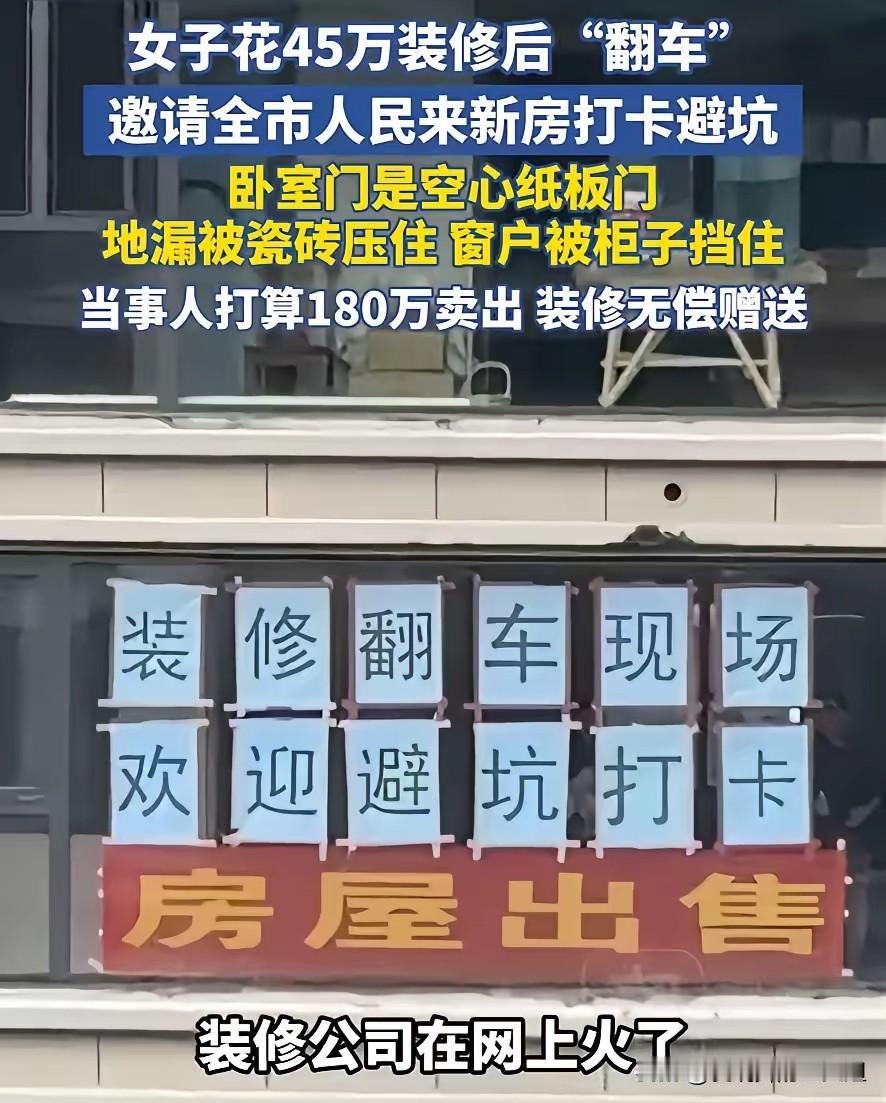 “遇到狠人了!”安徽阜阳,女子买了套160平米的大平层,找装修公司花45万装修,本以为能开开心心入住,结果验房时发现问题百出,一气之下,女子直接邀请网友“打卡避坑”,还把新房挂到网上出售,一下让装修公司火了一把。 这位刘女士的遭遇简直像一部装修恐怖片。160平的大房子,45万真金白银砸进去,等来的不是温馨家园,而是一堆让人哭笑不得的“翻车现场”。阳台地漏被瓷砖死死压住根本用不了,精心挑选的咖啡机因为餐边柜深度莫名其妙少了10厘米而放不进去,最离谱的是阳台柜子竟然把窗户挡住了一半,想开窗透口气都得先问问柜子同不同意。花了每平1150元高价定制的柜子,懂行的人一看却说质量和市面上六七百的差不多。工作15年攒下的积蓄几乎全都投进这个房子,换来的却是满满的失望和疲惫。 刘女士这波“开放房屋打卡”的操作,可以说是民间维权的一种新思路。她没有选择无休止的扯皮或是沉默认栽,而是直接把家门打开,让阳光照进装修的每一个角落。窗户上贴着的大字报,配上智能锁远程开门,短短几个月50多人前来参观。这种完全公开的方式,让装修质量的好坏大家一眼就能看明白,比任何华丽的解释都更有力。 抛开情绪看本质,这起纠纷背后是装修行业长期存在的痛点。根据《民法典》第791条,装修公司作为承揽人,有义务保证工程质量符合约定标准。如果质量不达标,业主有权要求修理、重作、减少报酬或赔偿损失。但问题在于,刘女士在维权过程中相对被动。她长期在外地工作,装修期间一次都没回过现场,仅靠微信和设计师沟通,直到完工才第一次验收。更关键的是,她在签订合同后很快就支付了高达80%的预付款,这让自己在后续的博弈中失去了重要的筹码。装修博主“阿文讲装修”在实地探访后也指出,虽然房子没有重大结构问题,但结合45万元的总价,这些小毛病不断的效果确实难以让人接受。 刘女士的案例给所有准备装修的人提了个醒。选择装修公司时不能光看他们展示的漂亮案例,还得仔细核对合同细节,明确材料品牌、型号、规格,避免使用“高档”这类模糊表述。付款方式最好是按工程进度分期支付,开工前就支付大额比例款项会降低对装修公司的约束力。如果条件允许,装修过程中尽量多到现场查看,或者请可靠的第三方进行监督,及时发现并解决问题。同时,注意保存好合同、付款凭证、沟通记录和现场照片视频,这些都是在发生纠纷时维护自身权益的关键证据。 一场装修纠纷让梦想之家变成了想要出售的“伤心地”。它提醒我们,构建一个家需要谨慎、清晰的沟通和必要的监督,无论是选择“全包”还是其他方式。 各位读者你们怎么看?欢迎在评论区讨论。