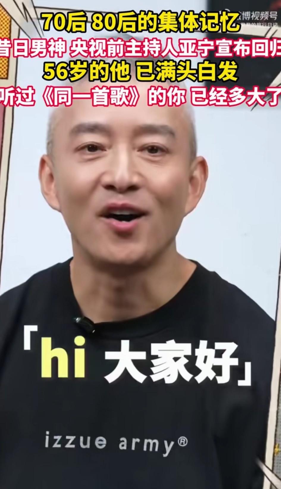 曾经那个央视最帅的主持人又回来了,10月31日亚宁在他的新的社交帐号上发布了一条视频宣布回归,那个70后80后集体记忆的《同一首歌》听过的你都多大了,听着熟悉的旋律,仿佛又把我们带回到那过去的日子,当年那个英俊少年再次回时已是满头青丝,他说这是岁月的礼物,只要那份初心还在,归来仍是少年,就像网友说的,法拉利老了,也是法拉利,大家还是像当初爱你那样的爱你。