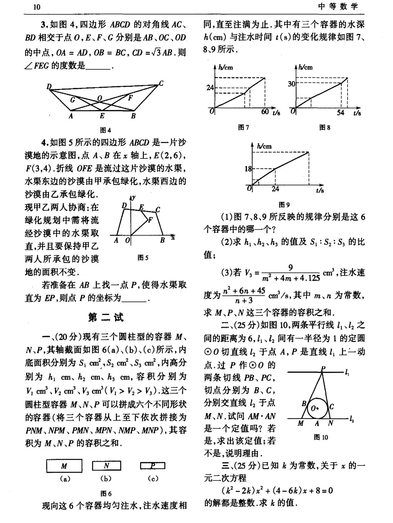 初中数学竞赛 能达到这种级别的能力 高中肯定进校队 如果学校再有较强的师资加以集训 进省队也很大机会 这种难度的数竞模拟卷 初中生很少接触到 只能靠自学 因为如果学校拿它来测试 结果要么两极分化严重 要么全是低分打击士气