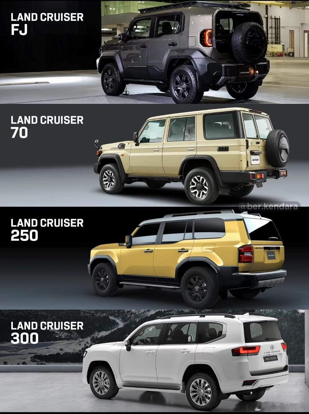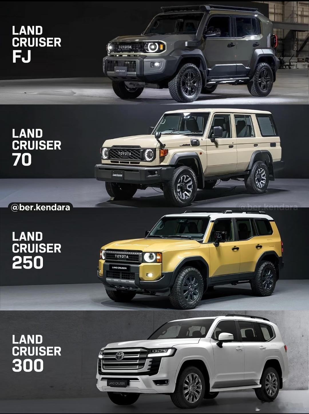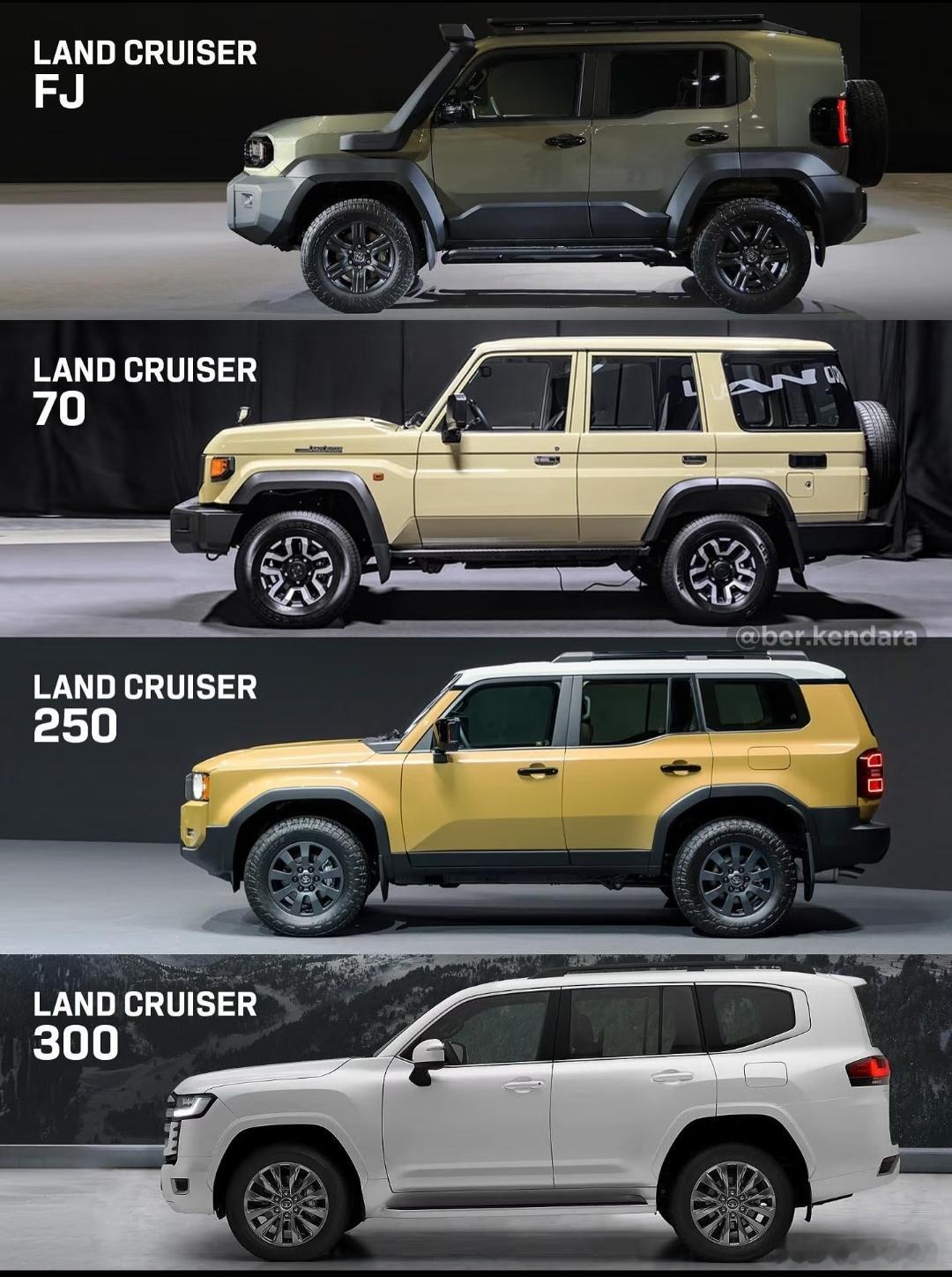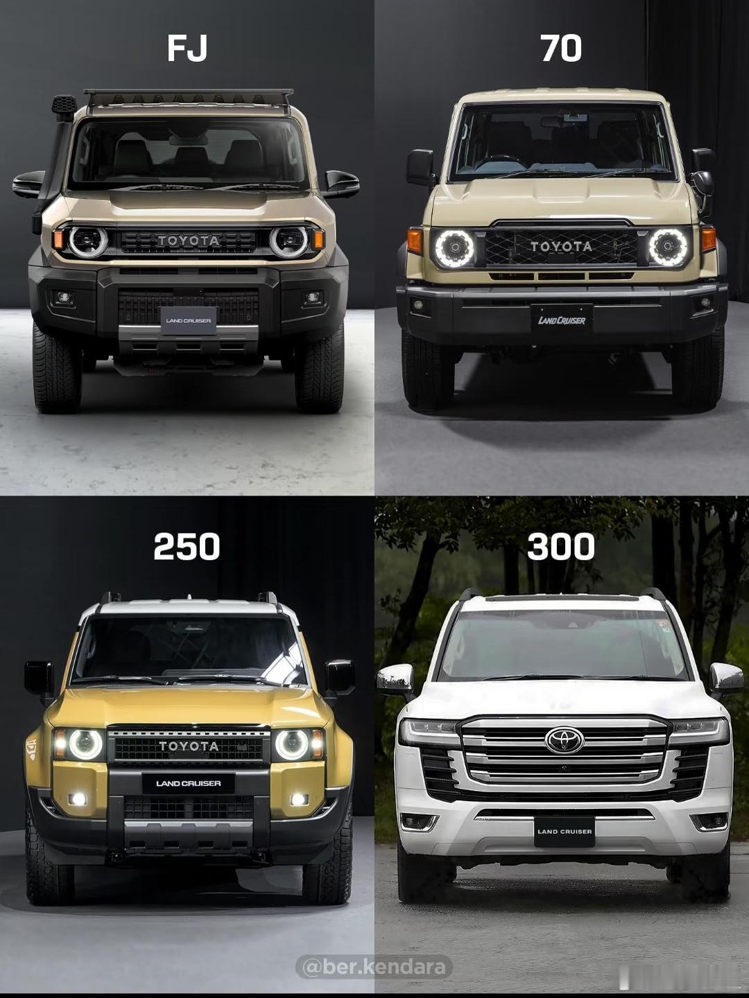 FJ走的是精致潮玩路线,lc70是纯硬核复古工具属性,lc250是兼顾家用的中尺寸越野,lc300就是旗舰级的全能选手。从外观到定位各有侧重,想买硬派越野车的基本都能在LC家族里找到对应的……