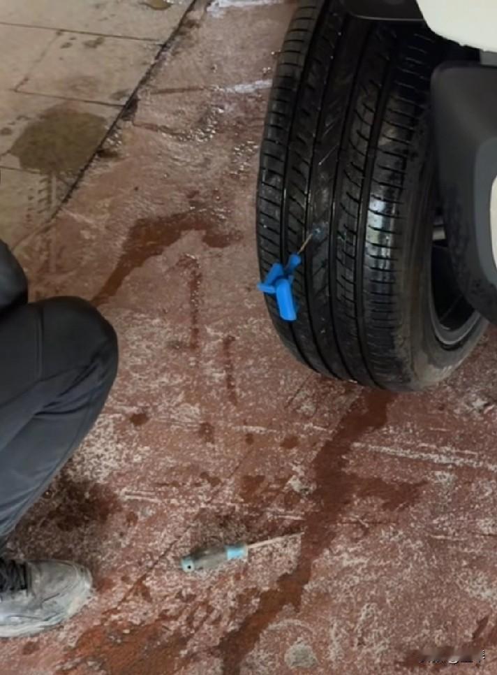 宜宾司机注意:万达往中坝大桥路段,有人故意撒钉扎胎,网友的车3个轮胎全废… “刚从万达开出来没一公里,轮胎‘噗’的一声就瘪了——下车一看,3个胎全扎了钉子!” 有网友爆料:自己在从宜宾万达往中坝大桥方向的路上,车被路面的钉子“伏击”,3个轮胎同时中招。从现场图能看到,轮胎上还插着带蓝色塑料帽的钉子,地上也散落着类似的钉具,疑似有人故意放置。 目前车主已经报警,警方正在调查中。像这种故意扎胎的行为不仅缺德,更是损坏他人财物的违法行为——希望警方能尽快查到始作俑者,也愿大家都能平安出行。 网眼看宜宾