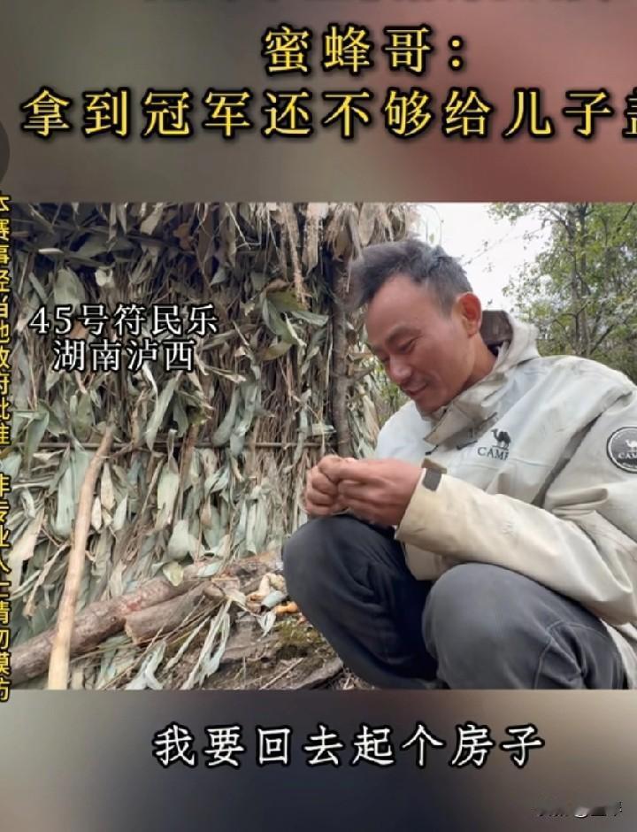 底层人的生活有多艰难,看看骆驼杯荒野求生就知道了! 张家界七星山的野林里,草棚漏着风,45号选手“蜂蜜哥”蹲在土坡上搓着手——他刚啃完半颗野果,手上还沾着泥。 主播举着话筒凑过来:“要是拿了奖金,打算咋花?” 这个湖南泸西的汉子忽然低下头,指节摩挲着磨破的外套袖口:“能拿到就好了,其实也不够花……先回家起个两层小楼,俩娃现在还挤在老房里,老母亲也跟着受委屈。” 这话像冷雨裹着沙,砸得人鼻子发酸。 对看客来说,“骆驼杯荒野求生”是屏幕里的刺激挑战:钻木取火、找野食、熬通宵……可对蜂蜜哥而言,这不是综艺,是拿体力换“家”的赌注——他要的不是奖杯,是让儿子不用挤在漏雨的老房、让老母亲能住上不透风的屋子。 多朴素的愿望啊?不过是“有个像样的家”。可就是这点念想,要靠他在深山里啃野果、睡草棚,把“荒野求生”活成“生活求生”。 他哪里是在参加比赛?分明是在替无数底层家庭,攥着那根“够到普通生活”的稻草。我们习以为常的“安稳住处”,是他拼尽全力才能摸到的边;我们随口说的“不够花”,是他扛着一家老小的“不敢花”。 这哪里是荒野里的极限挑战?是普通人在生活里的绝地跋涉——有人把冒险当消遣,有人把冒险当生路。 你有没有过这样的时刻?突然发现自己随手拥有的,竟是别人拼尽全力才想摸到的边? 或许是一顿不用计算成本的晚餐,或许是一个能遮风挡雨的小窝,又或许是不用为家人住房发愁的踏实。如果有,不妨在心里悄悄说一句:原来我已经拥有了别人渴望的“普通生活”。而这份普通,其实藏着最难得的安稳。 今日所见所闻张家界