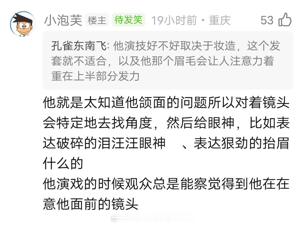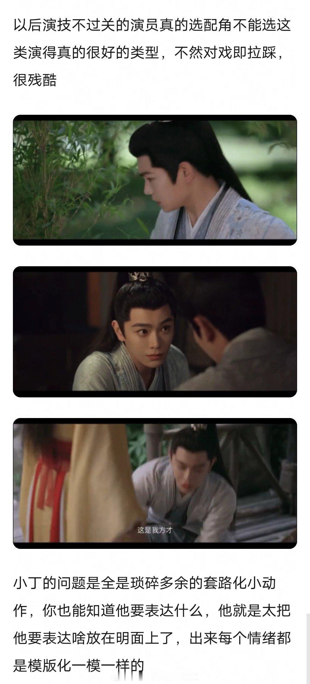 对比之下小丁演戏特别模式化,起范儿式演技,演感特别重,出来的每个情绪都是模版化一模一样的。。。