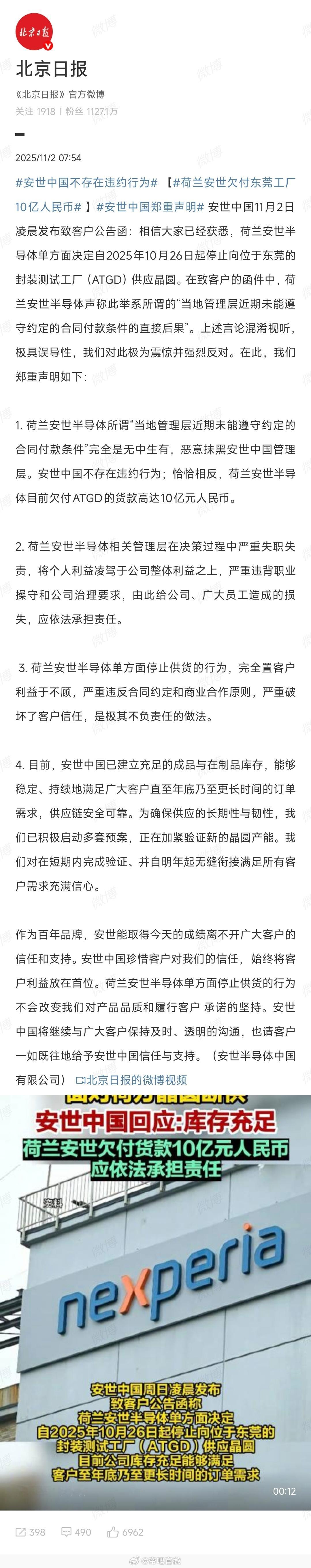 安世中国郑重声明 荷兰真是海盗国家,不过这苦果要他们自己咽了。