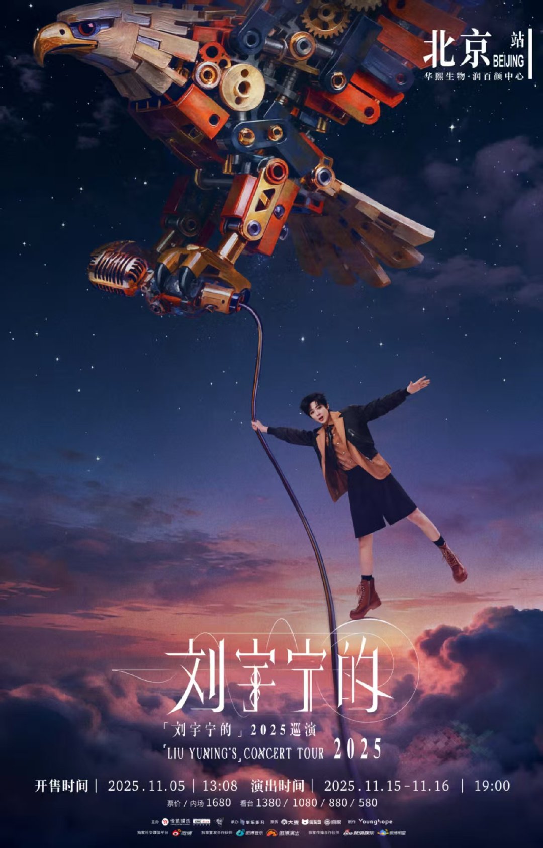 刘宇宁北京站双场官宣刘宇宁北京站双场正式官宣刘宇宁北京演唱会海报太有创意!机械鹰与复古麦克风结合,星空与云海营造氛围,细节处理细腻,让人一眼沦陷!